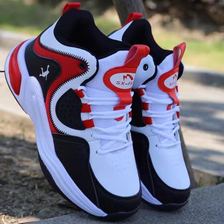 2025 봄 신작 남성 신발 가죽 하이 탑 농구화 운동화 레드 메쉬 Douyin Kuaishou Dropshipping Cross Border
