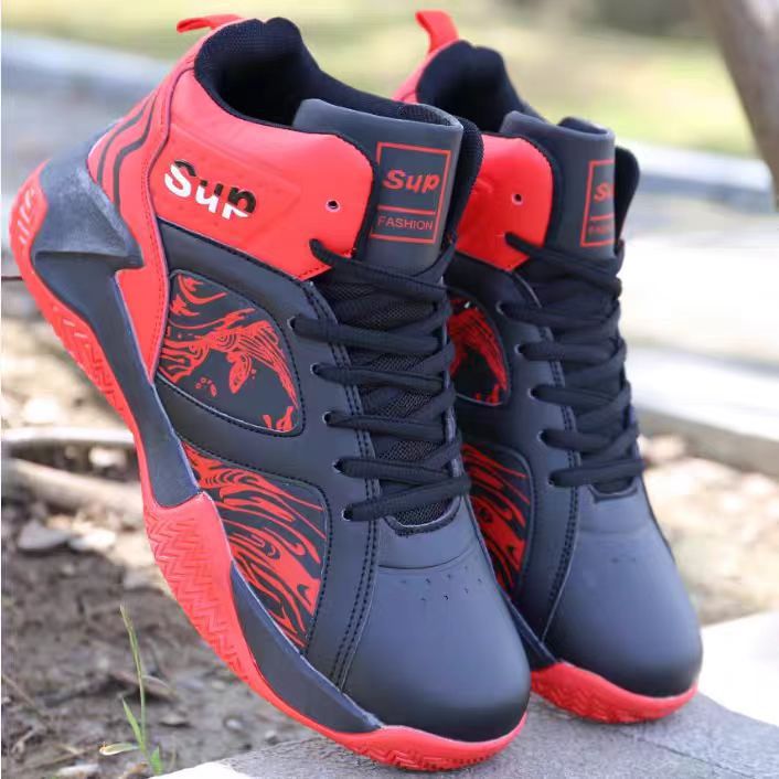 2025 봄 신작 남성 신발 가죽 하이 탑 농구화 운동화 레드 메쉬 Douyin Kuaishou Dropshipping Cross Border스토어 가기