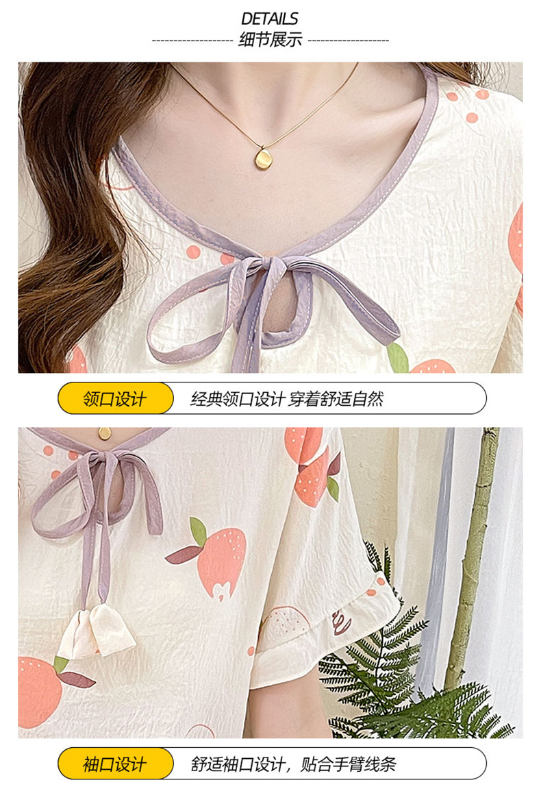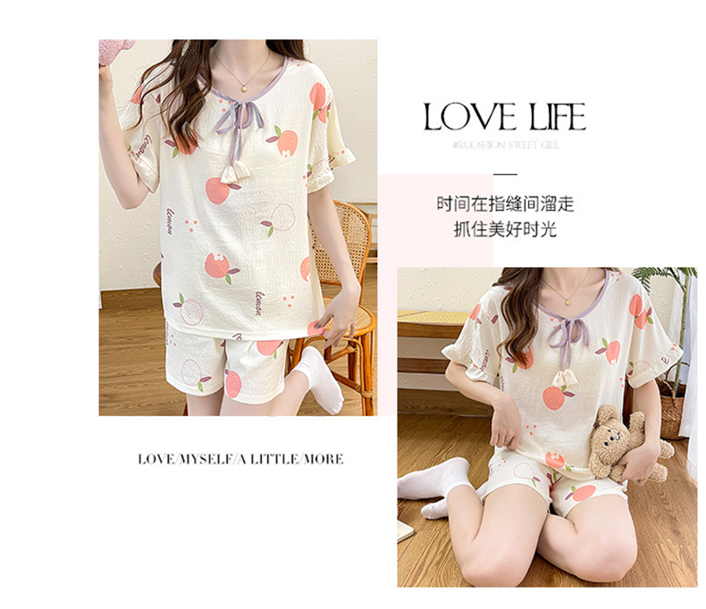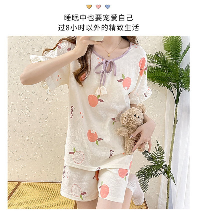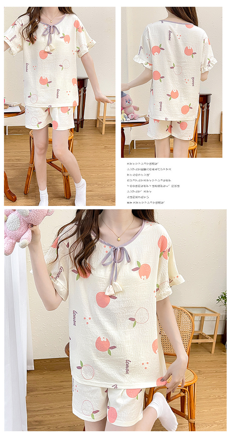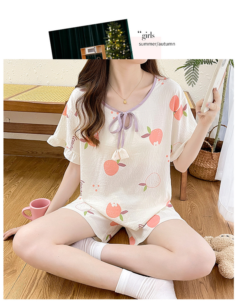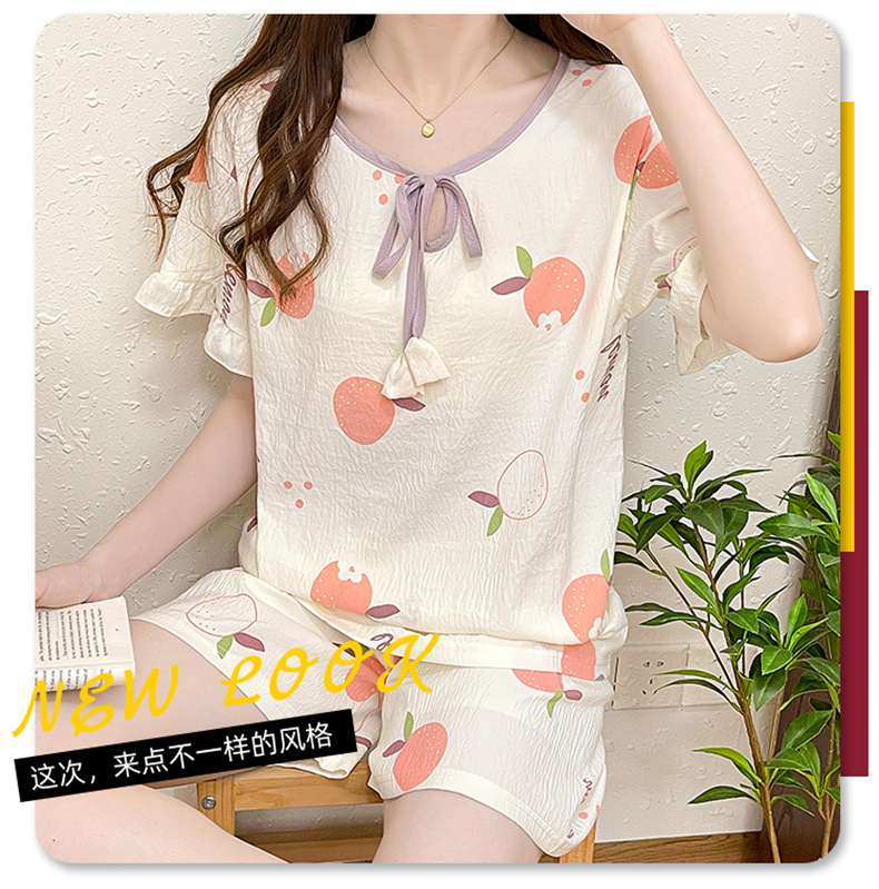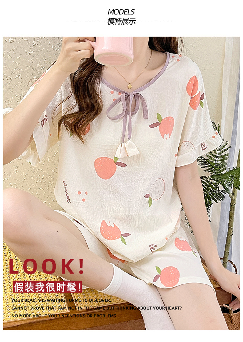 여성용 구름면 잠옷 2024 여름 인스 스타일 반팔 반바지 투피스 홈웨어 외출복으로도 착용 가능 통기성 좋고 편안함스토어 가기