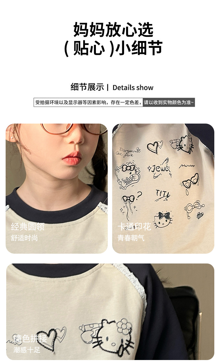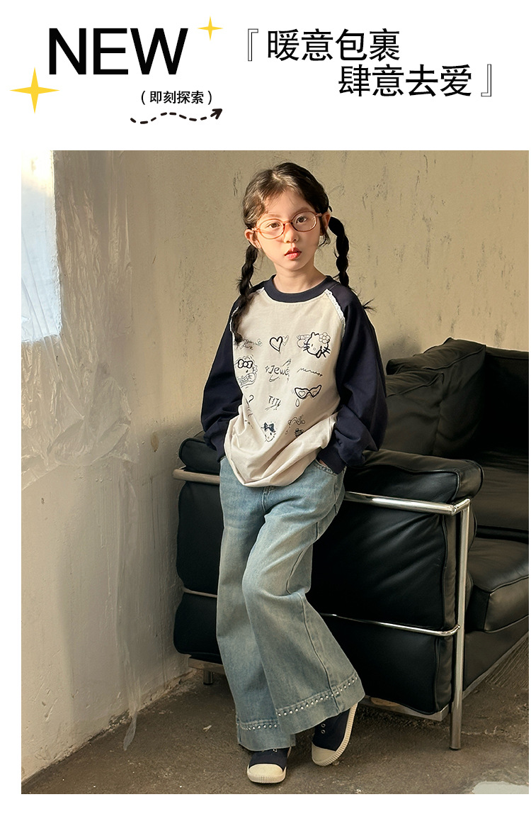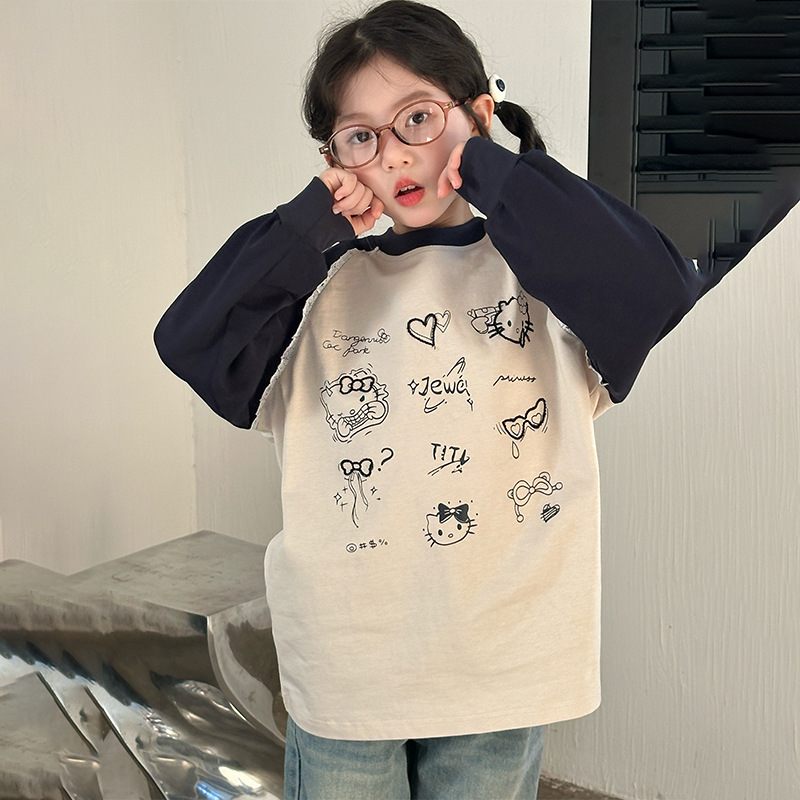 소녀 2025 봄 어린이 라글란 슬리브 티셔츠 2025 새로운 소녀 만화 인쇄베이스 셔츠 이른 봄 내복스토어 가기