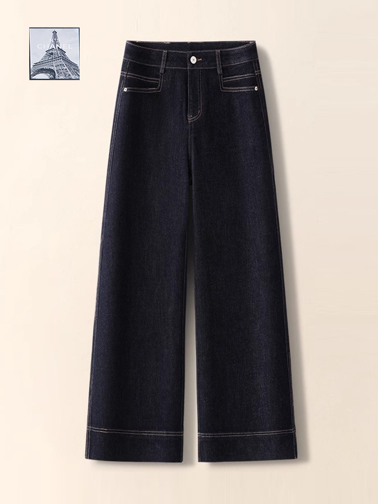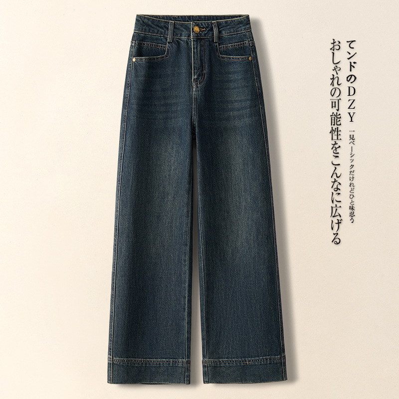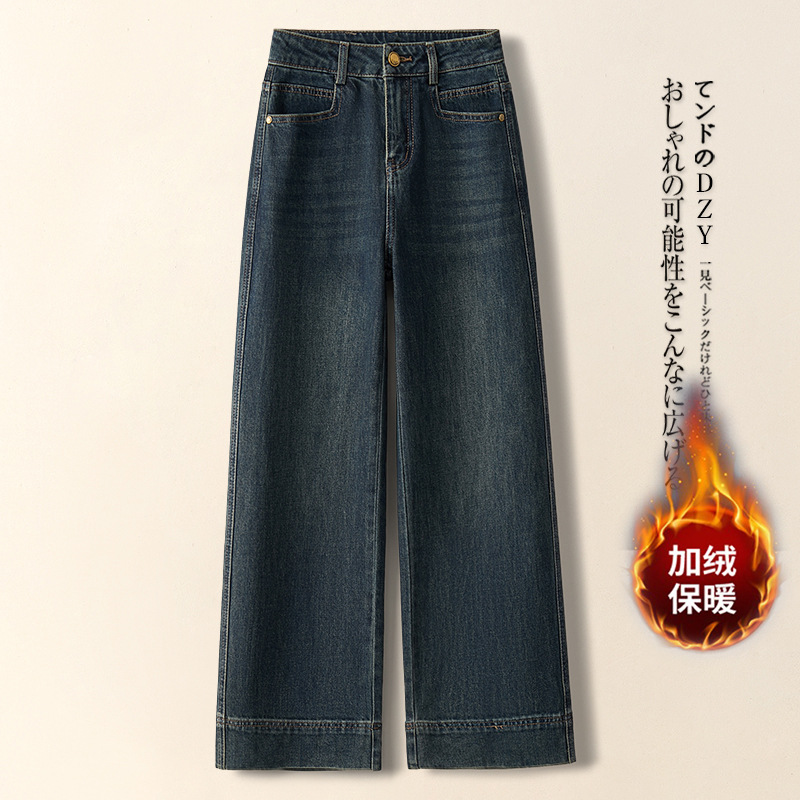 넓은 다리 청바지 여성의 가을과 겨울 2025 새로운 높은 허리 느슨한 파깅 작은 좁은 기모 두꺼운 스트레이트 바지스토어 가기