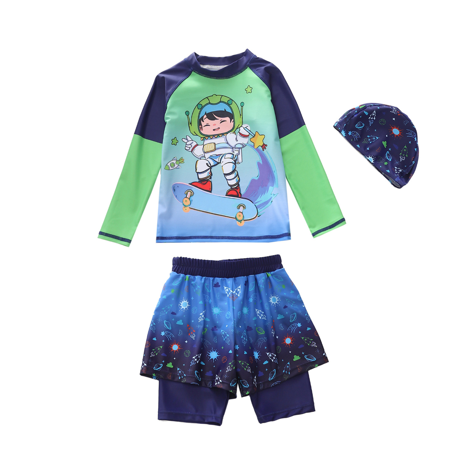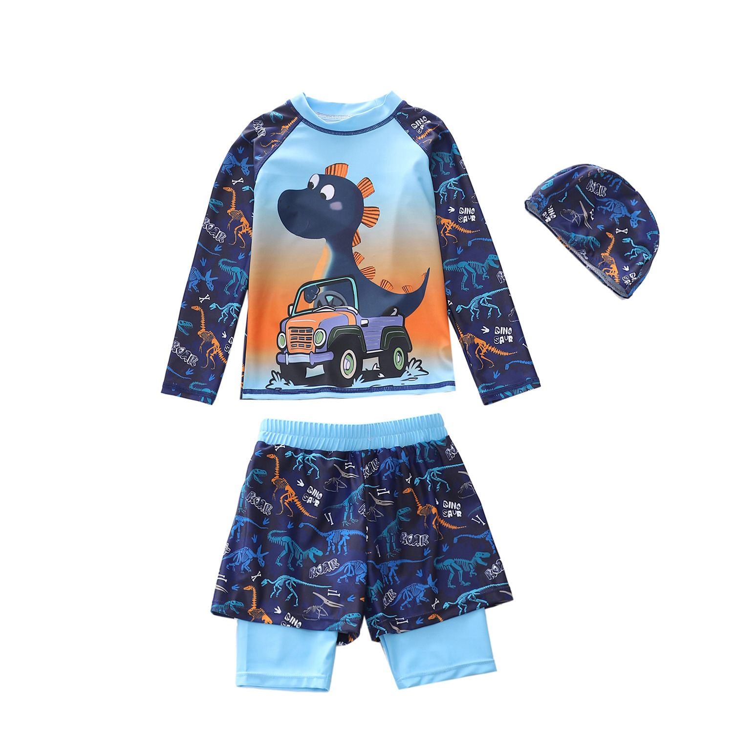 2024 소년과 소년을위한 새로운 어린이 수영복 긴 소매 소형 및 대형 어린이 수영복 플랫 코너 더블 레이어 소년 수영복