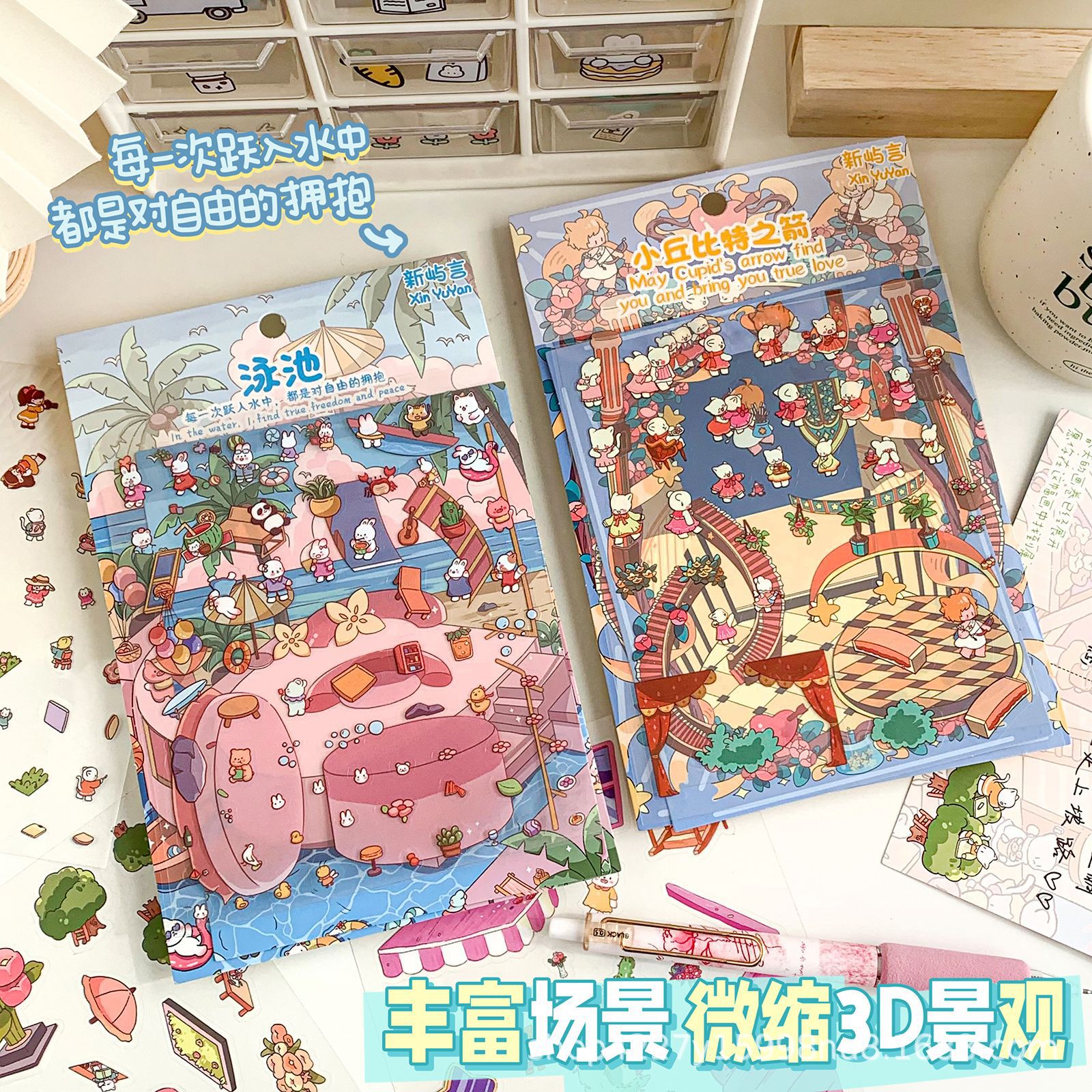 Xinyuyan 11.0 새로운 조경 스티커 코팅 공예 핸드북 미니어처 장면 3D 조경 수제 DIY스토어 가기