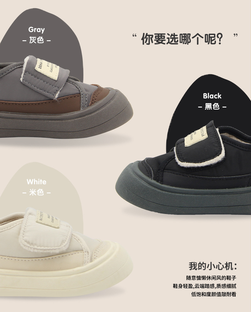 TS 정품 어린이 면화 겨울 새 소년과 소녀 기모 보드 신발 벨크로 아기 두 면 실내 신발 1319