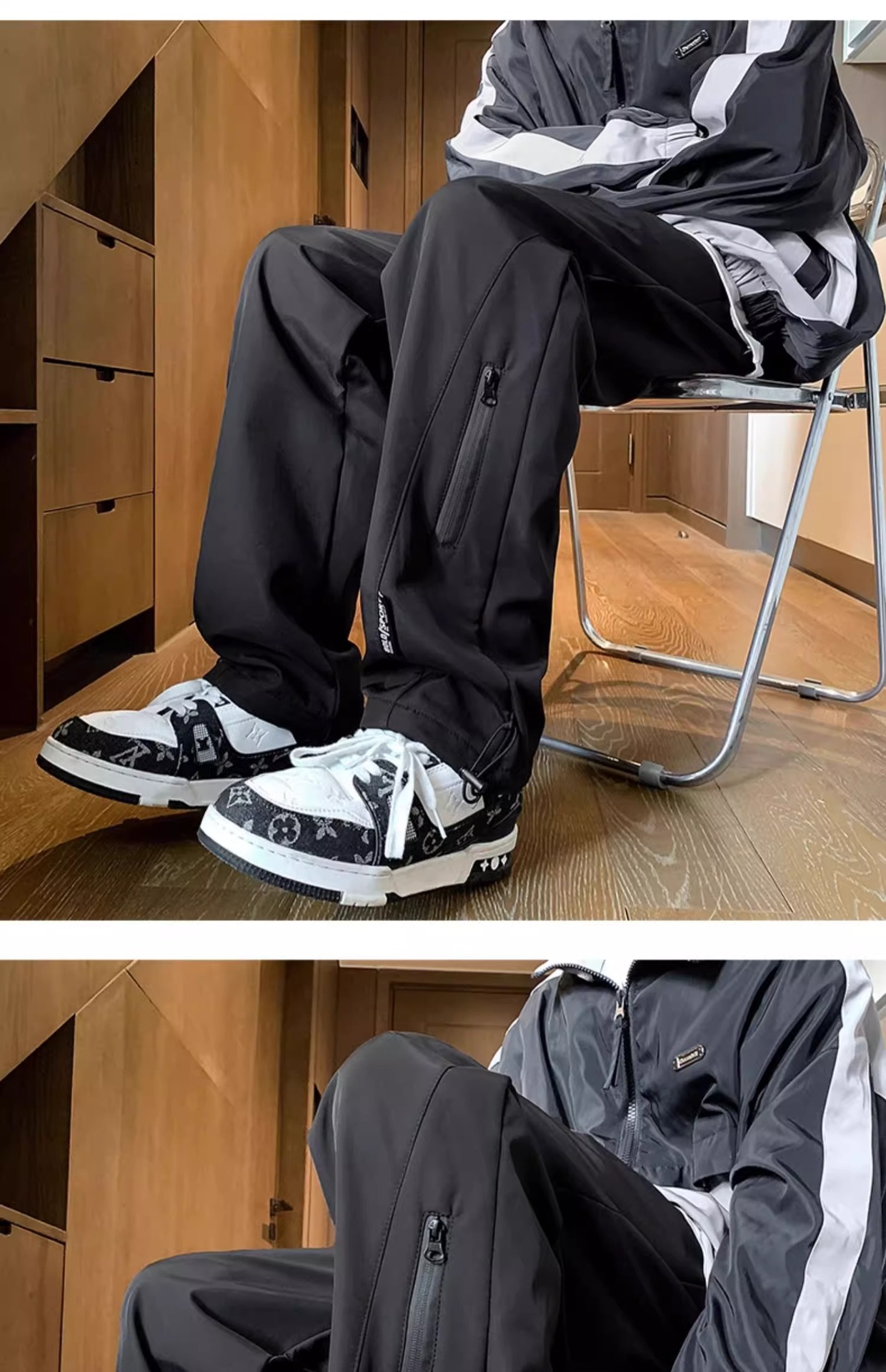아메리칸 스타일 충전 바지 남자의 가을과 겨울 방수 방풍 2024 새로운 기모 두꺼운 스포츠 느슨한 캐주얼 바지스토어 가기