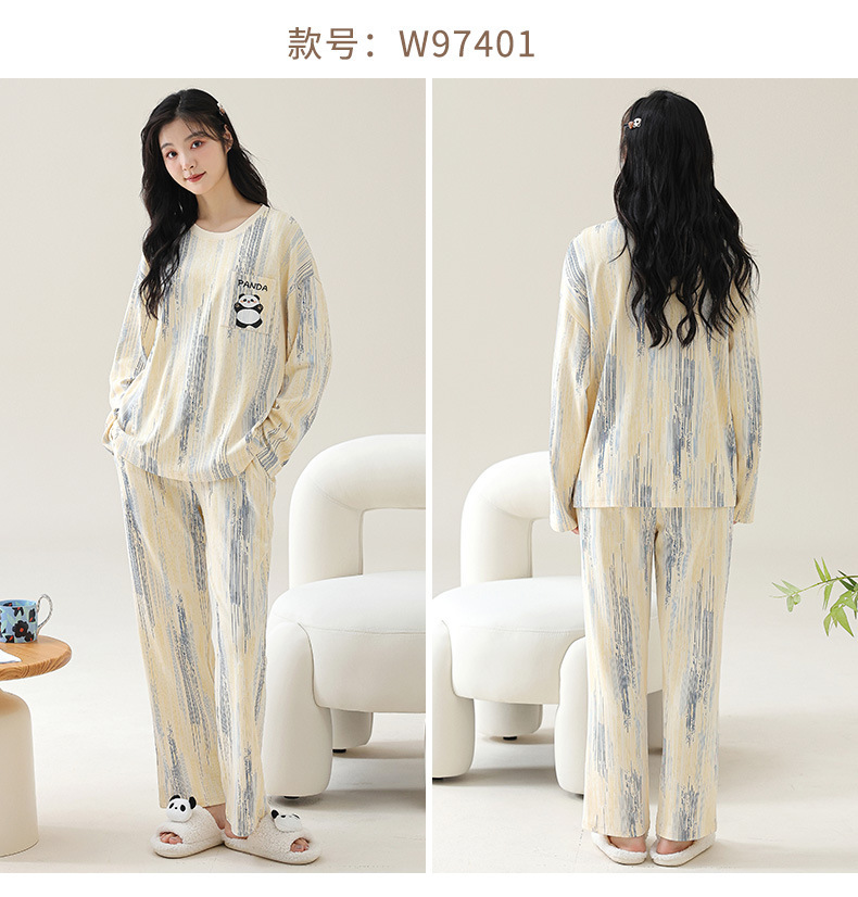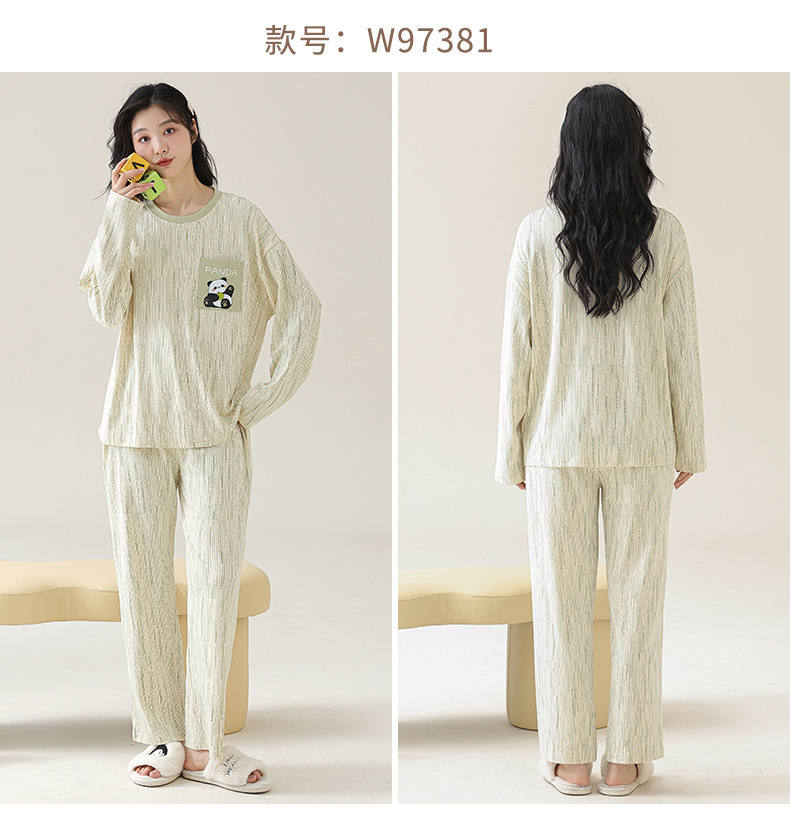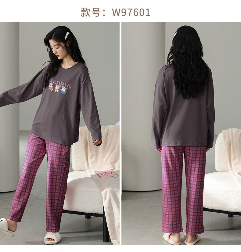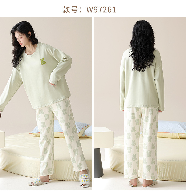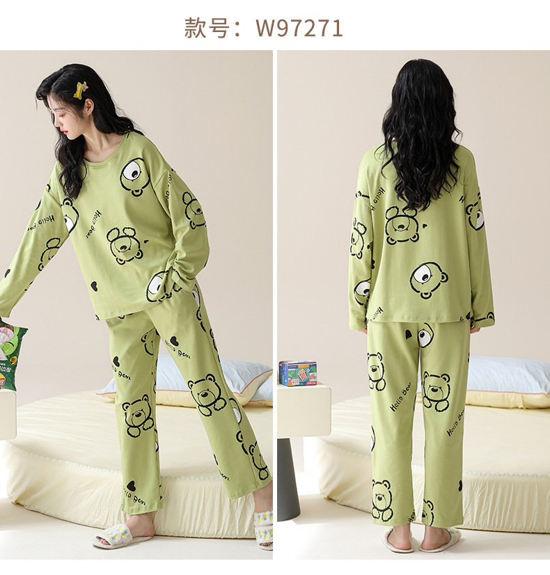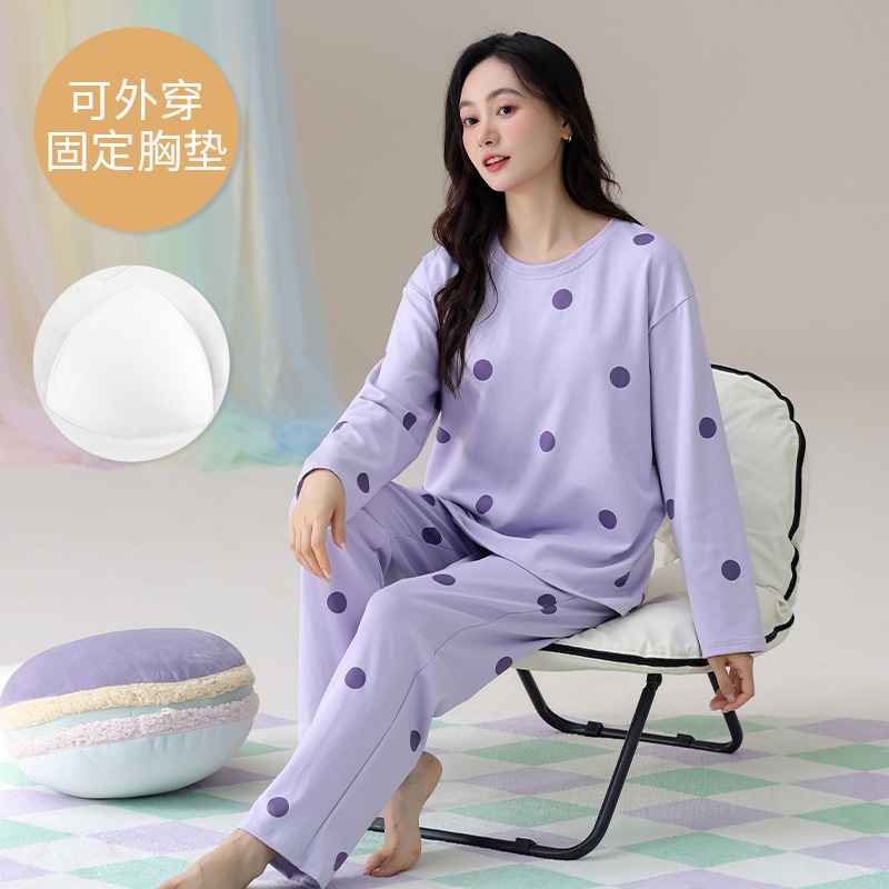 2025 긴 소매 잠옷 여성의 가을 만화 얇은 코튼 홈 옷 봄, 가을, 겨울 세트 입고 가슴 패드 외부스토어 가기