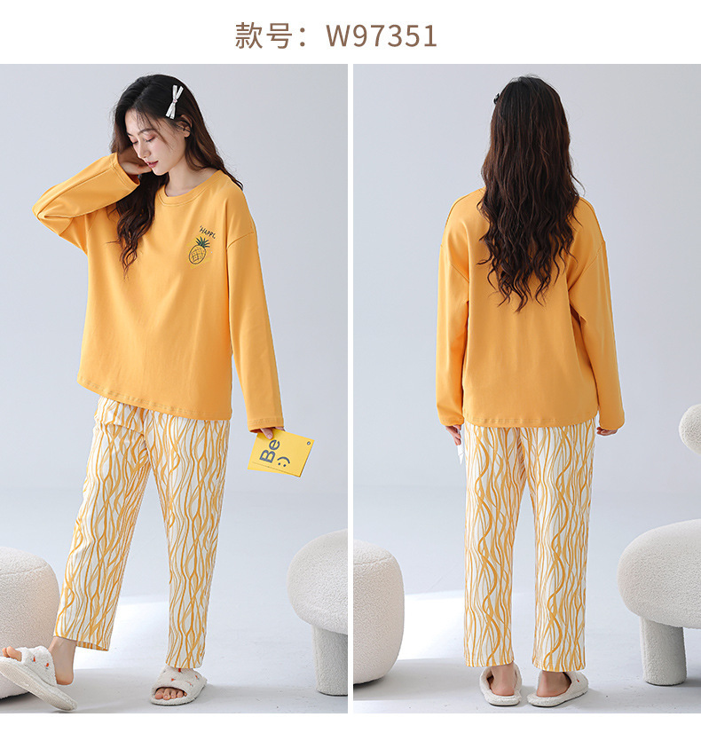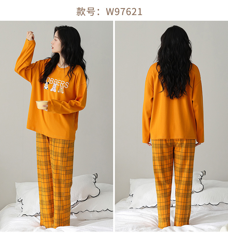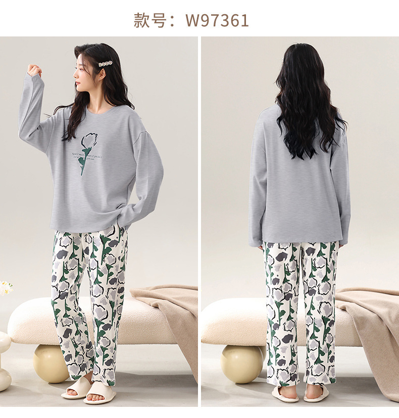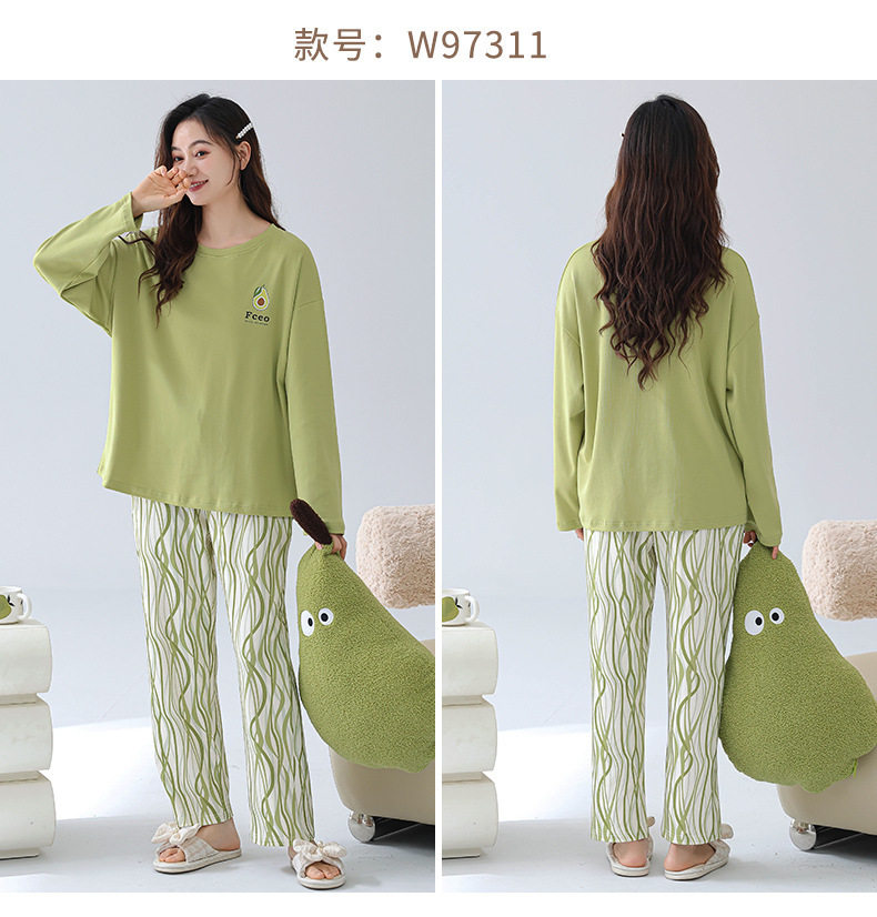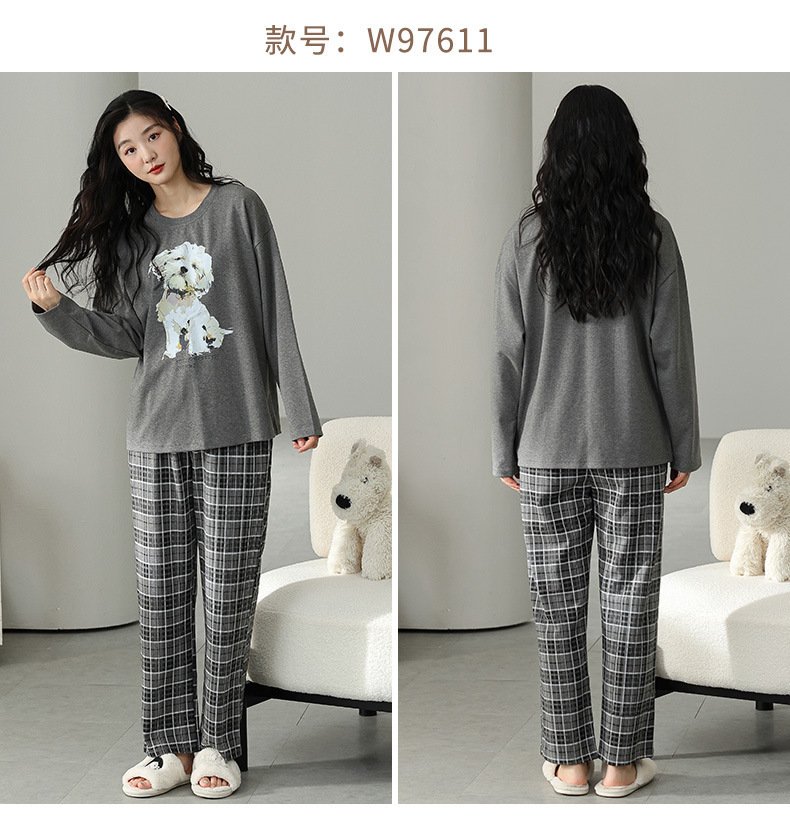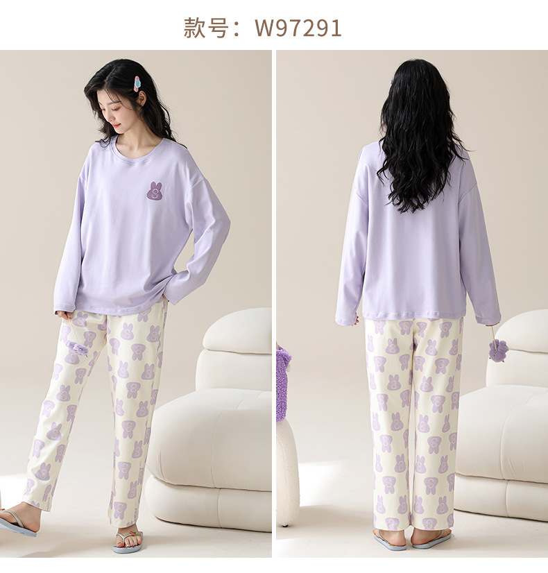 2025 긴 소매 잠옷 여성의 가을 만화 얇은 코튼 홈 옷 봄, 가을, 겨울 세트 입고 가슴 패드 외부스토어 가기
