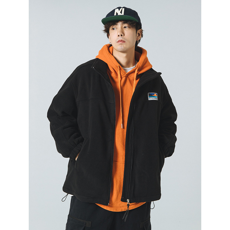 양털 칼라 재킷 남자와 여자의 가을 겨울 두꺼운 Bf 한국 스타일 넓은 느슨한 칼라 학생의 입자 양털 솔리드 컬러 재킷스토어 가기