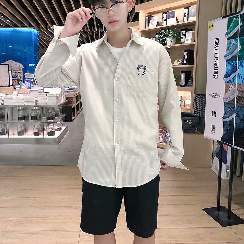 긴 소매 격자 셔츠 남자의 한국 스타일 슬림-적합 청소년 유행 잘 생긴 셔츠 커플의 캐주얼 얇은 셔츠 남성 스타일스토어 가기