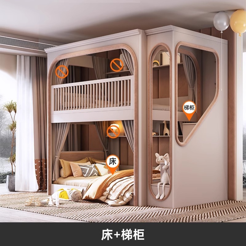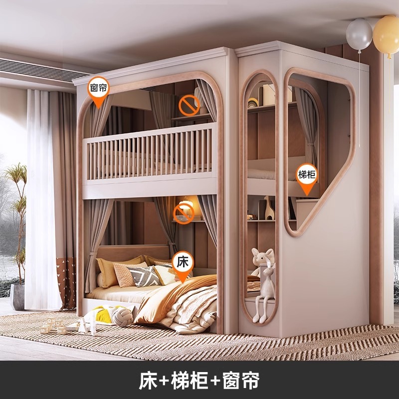 • 상부 및 하부 침대 + 사다리 캐비닛 + 커튼
