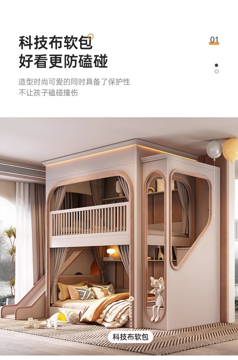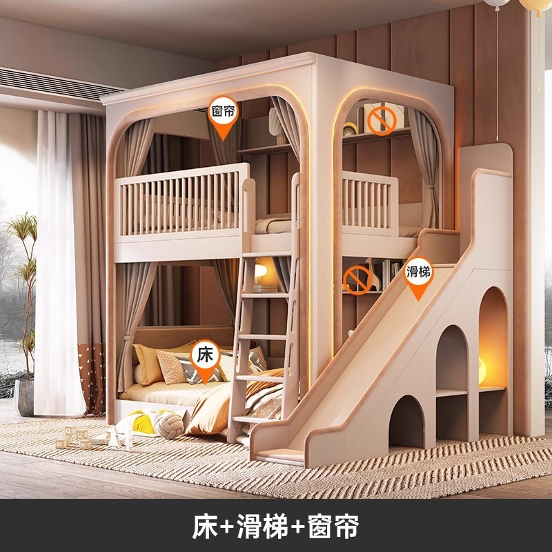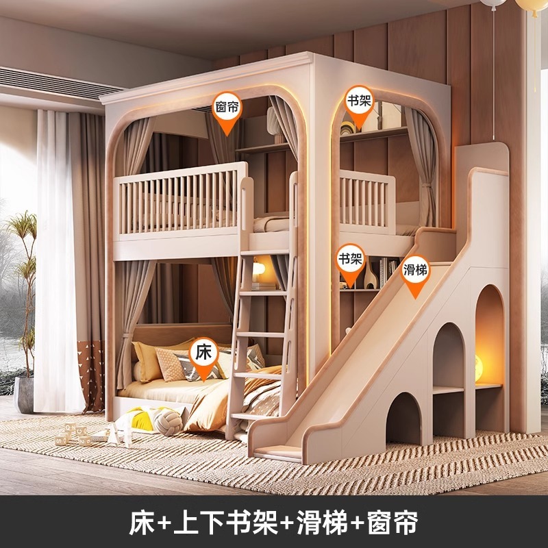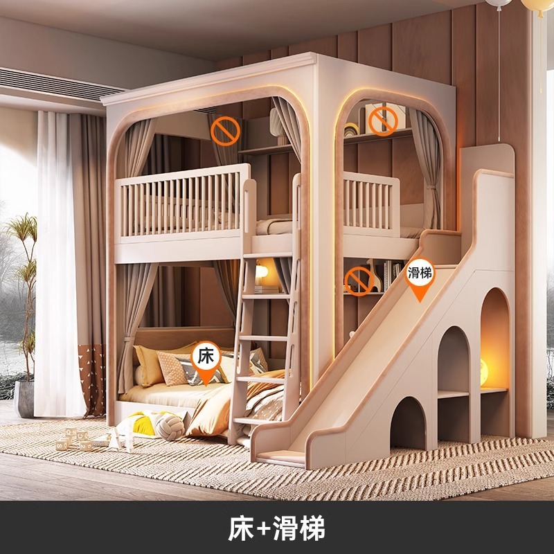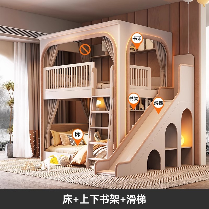 상하 이층 침대 작은 아파트는 형제 자매를 방해하지 않습니다 어린이 침대 높고 낮은 어린이 슬라이드 공간 캡슐 지붕 침대스토어 가기