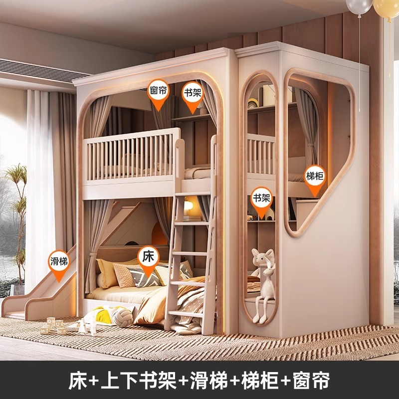 상하 이층 침대 작은 아파트는 형제 자매를 방해하지 않습니다 어린이 침대 높고 낮은 어린이 슬라이드 공간 캡슐 지붕 침대