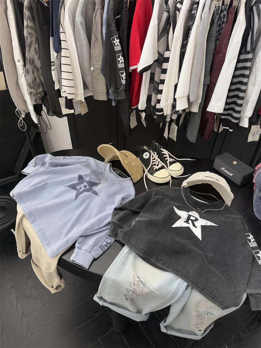 砂洗做旧工艺,蓝色很洋气,黑色百搭