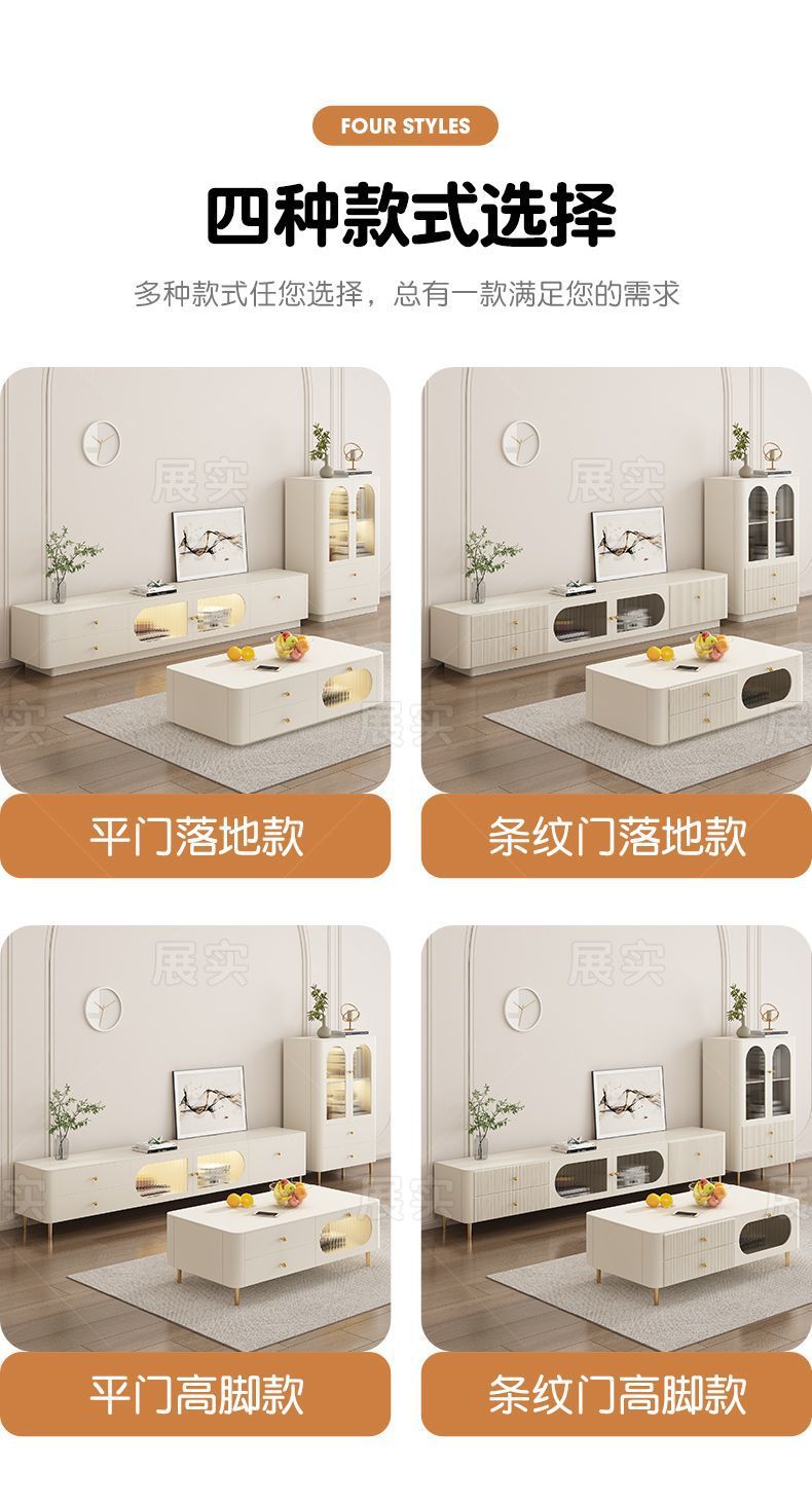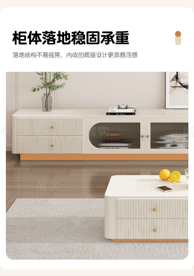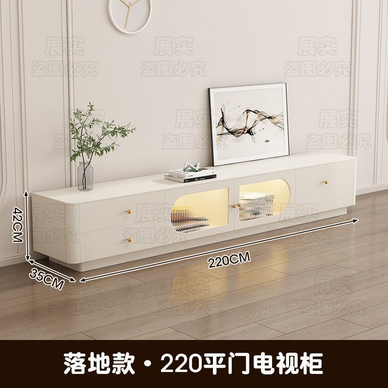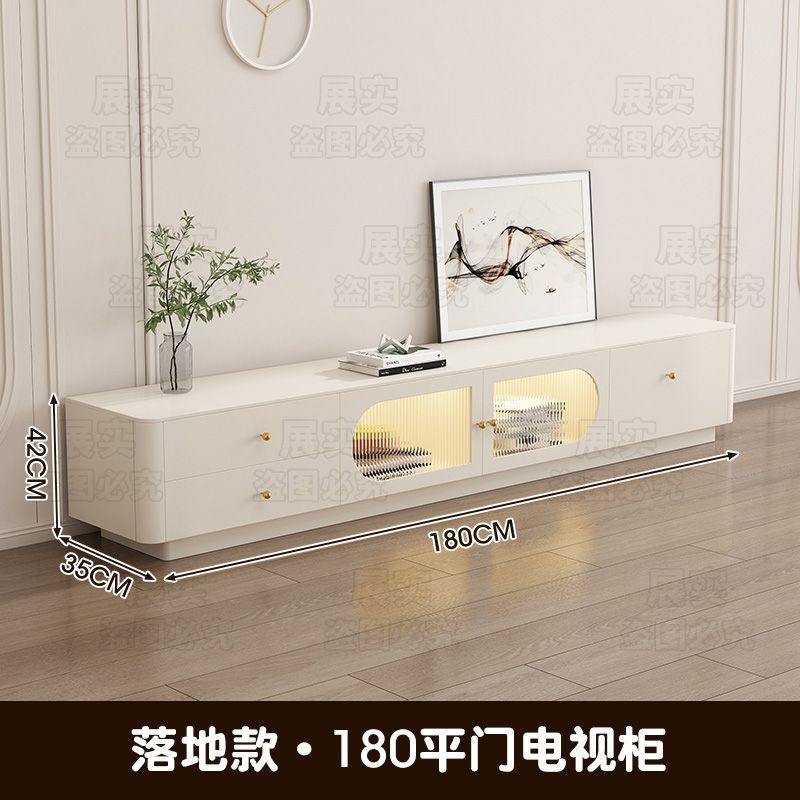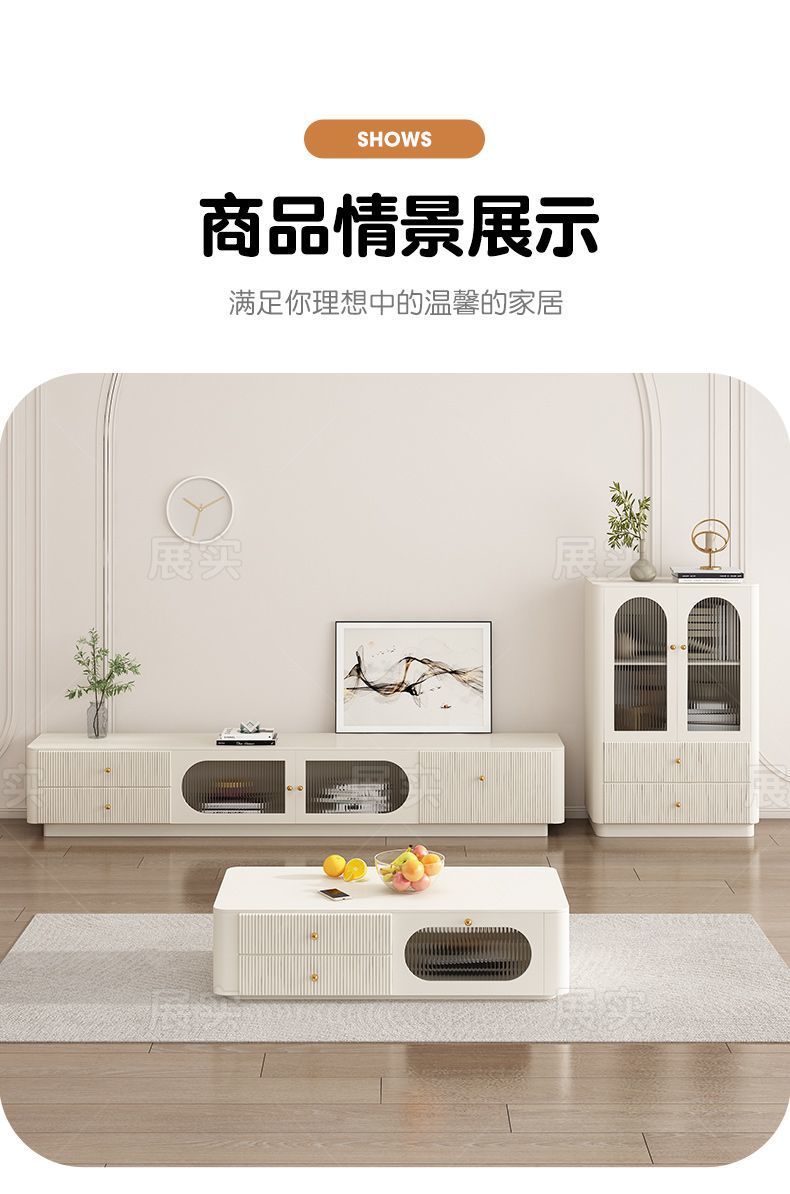 TV 캐비닛 간단한 현대 크림 스타일 거실 가정용 작은 아파트 바닥 서 가벼운 고급 침실 보관 커피 테이블 조합스토어 가기