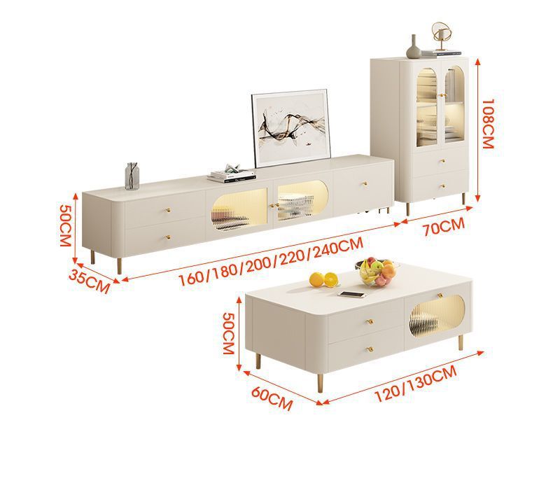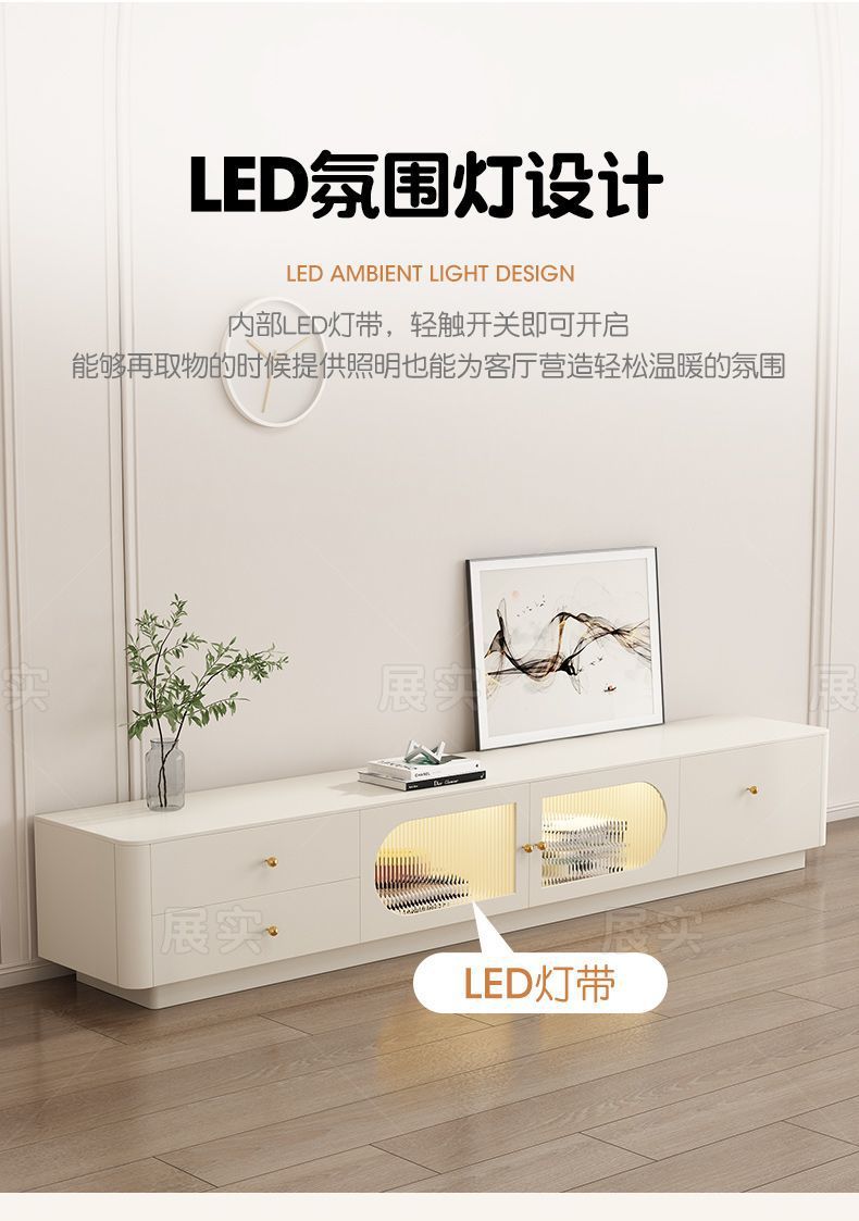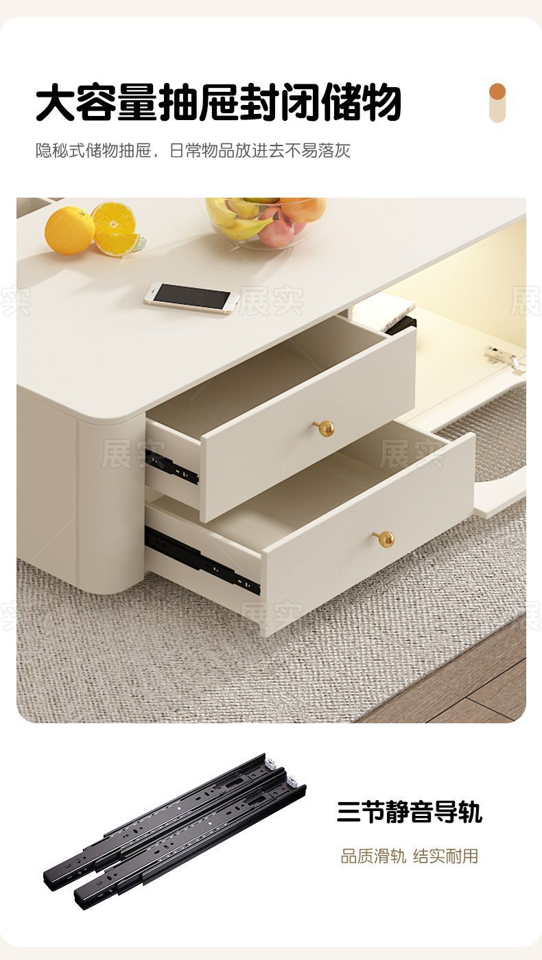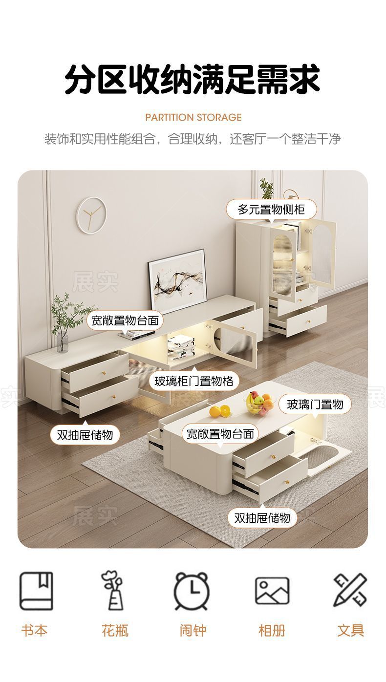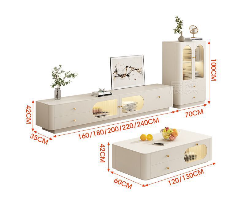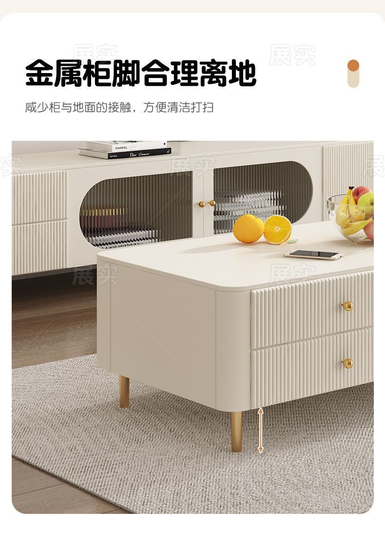 TV 캐비닛 간단한 현대 크림 스타일 거실 가정용 작은 아파트 바닥 서 가벼운 고급 침실 보관 커피 테이블 조합스토어 가기