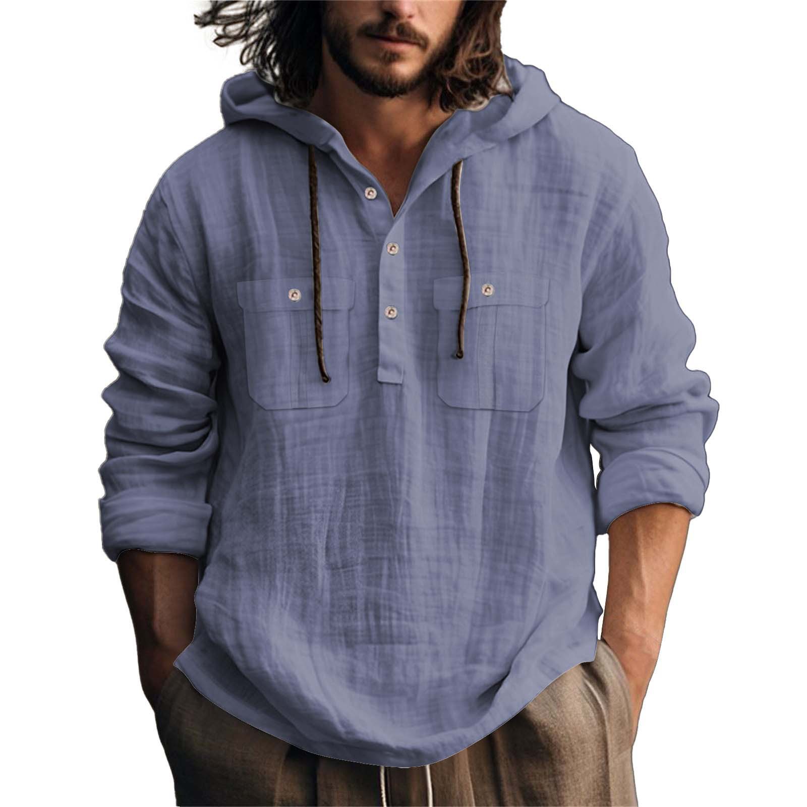 2025 국경을 넘는 유럽과 미국의 새로운 남성 후드 긴 소매 스웨터 린넨 느슨한 단색 패션 캐주얼 남성 셔츠스토어 가기