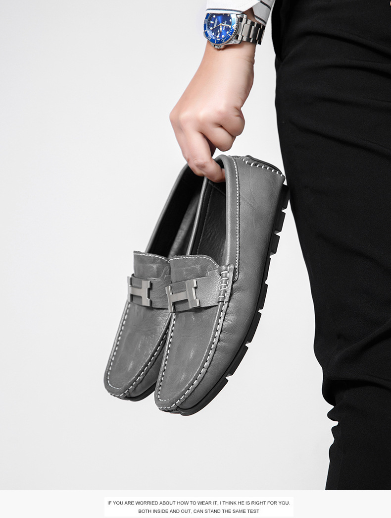 정품 가죽 남성 신발 로퍼 새로운 영국 비즈니스 신발 통기성 부드러운 밑창 캐주얼 신발 게으른 남성 슬립 온 신발스토어 가기
