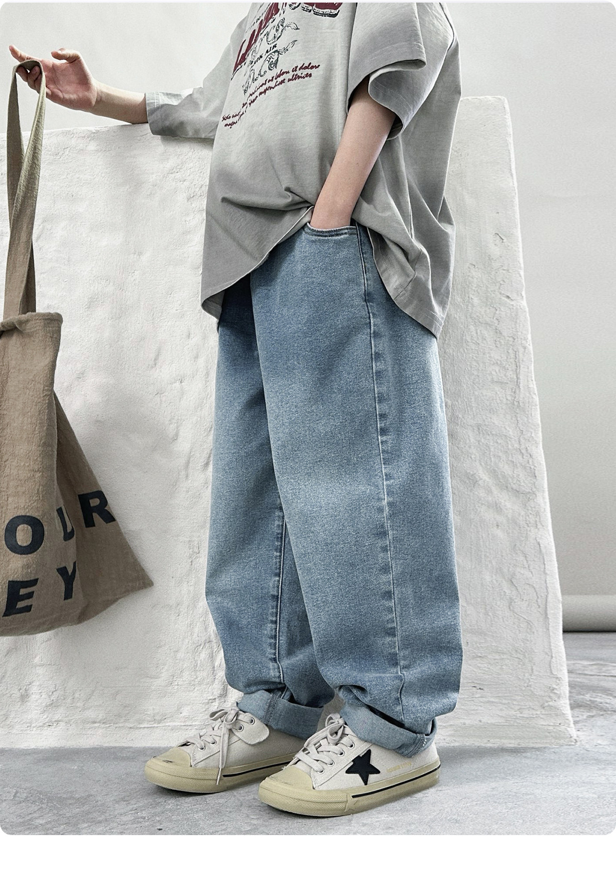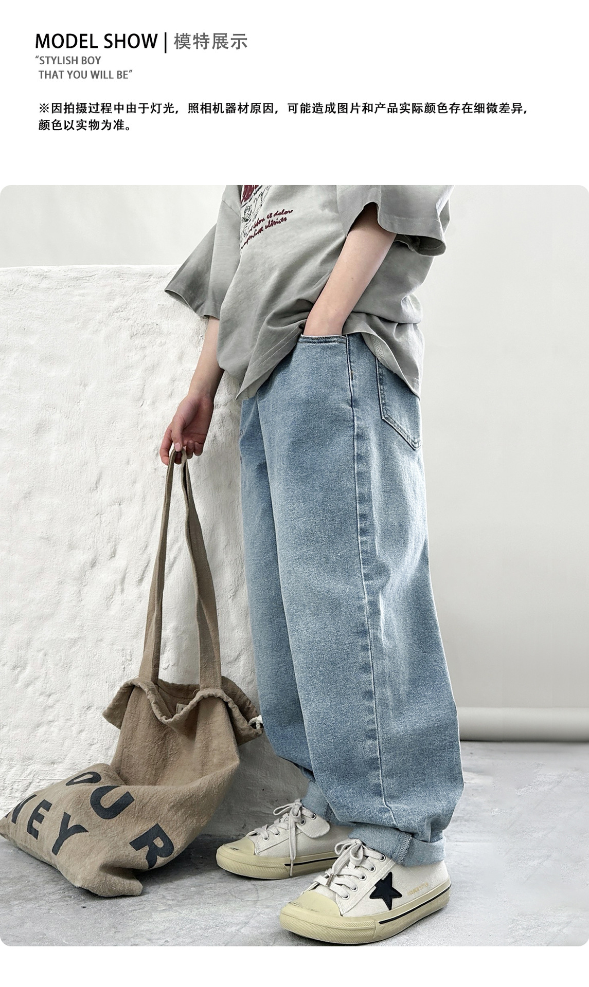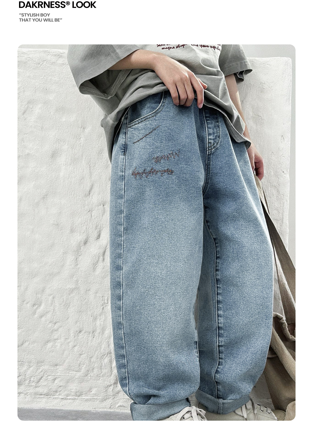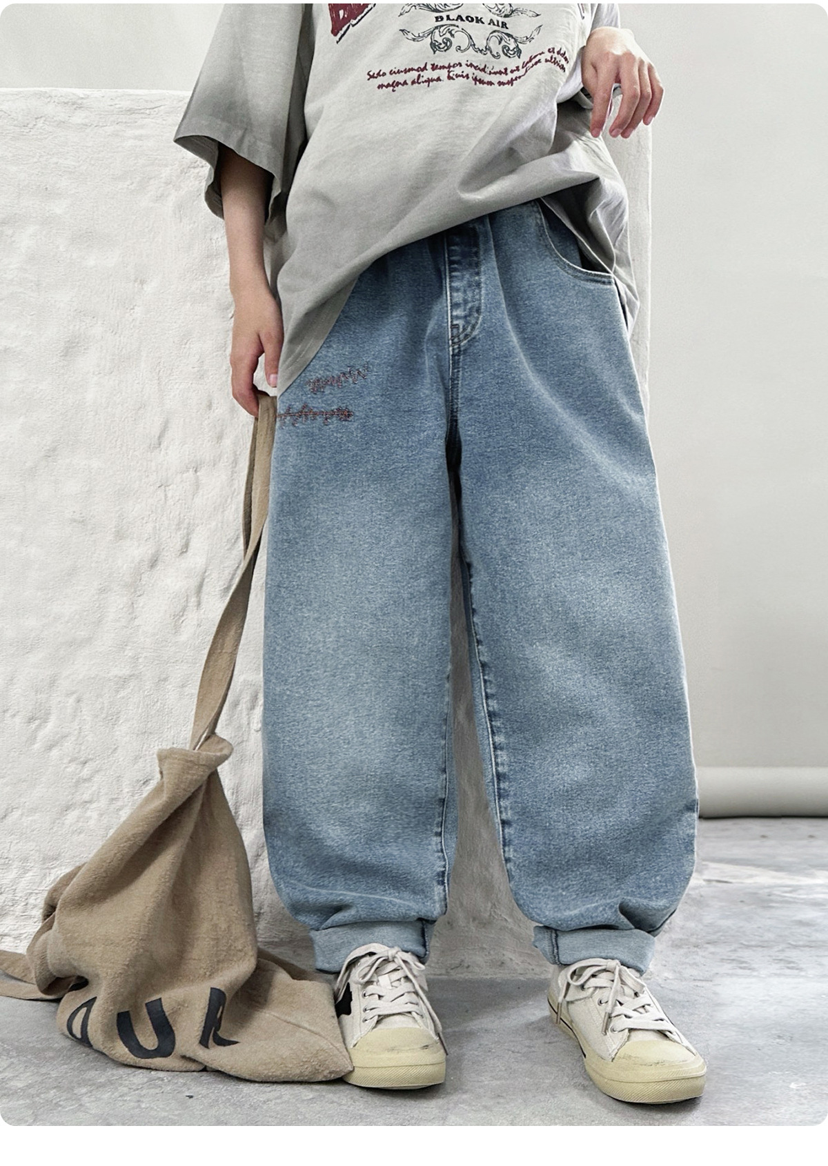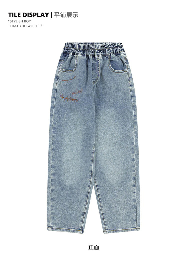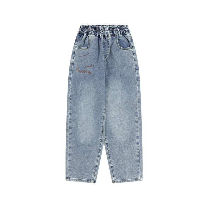 DK 아동복 2025 가을 신상품 여아 및 남아 자수 스트레이트 청바지 아동 한국 스타일 바지스토어 가기
