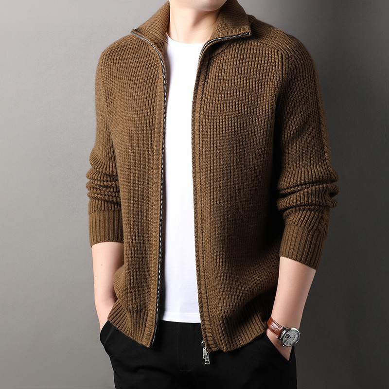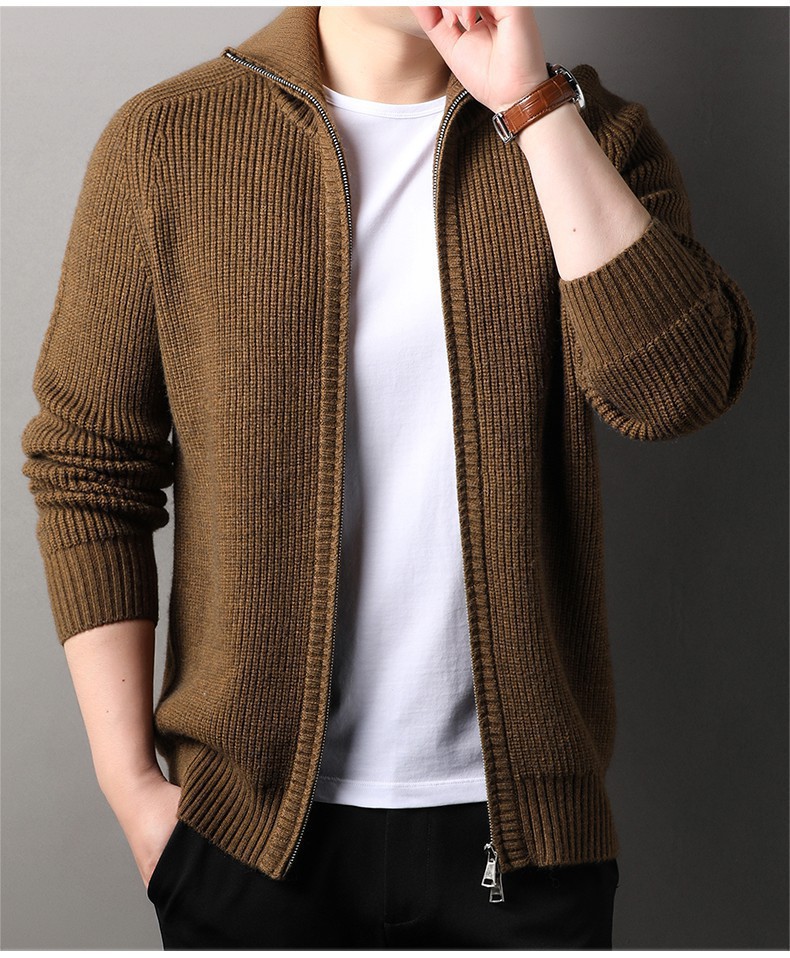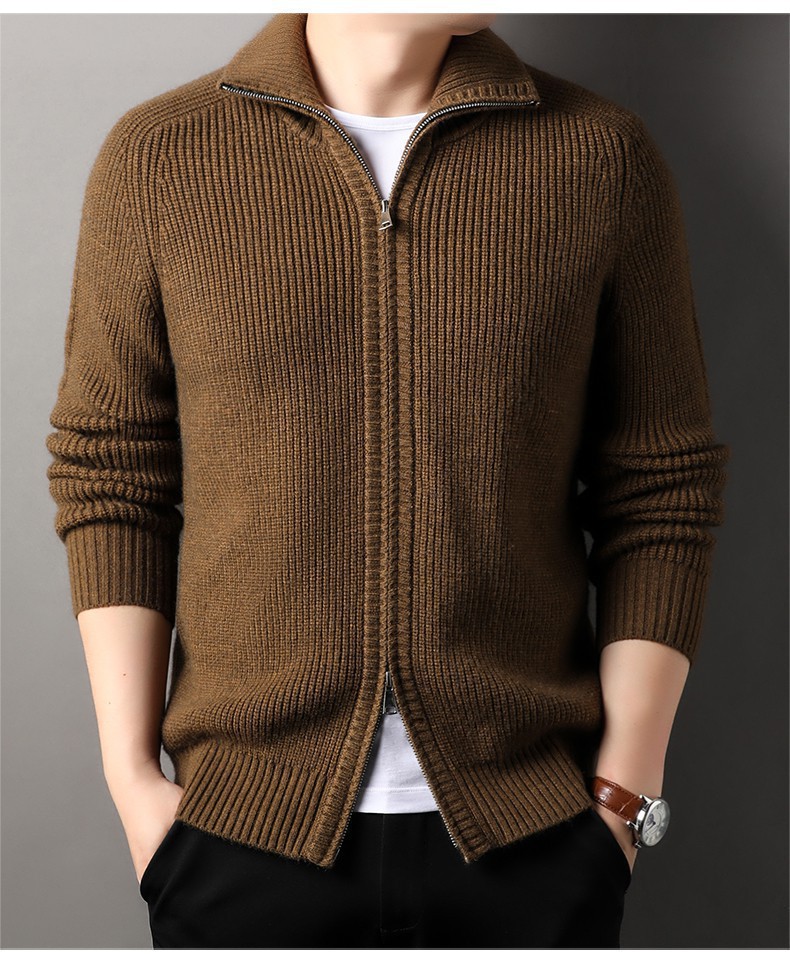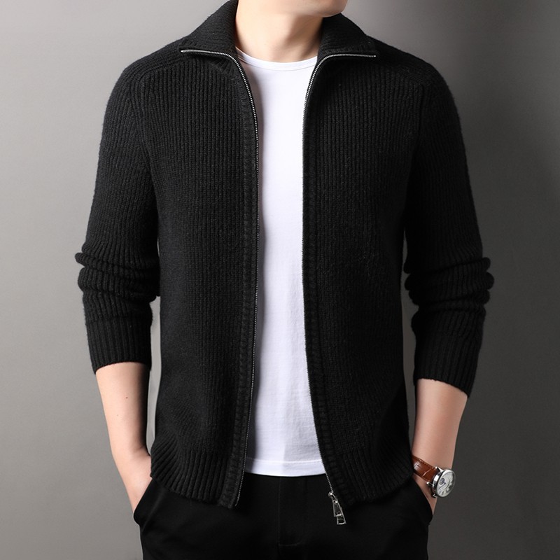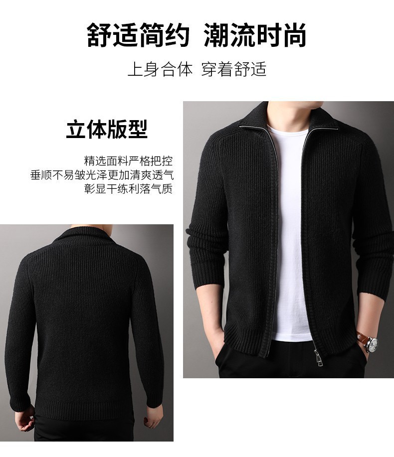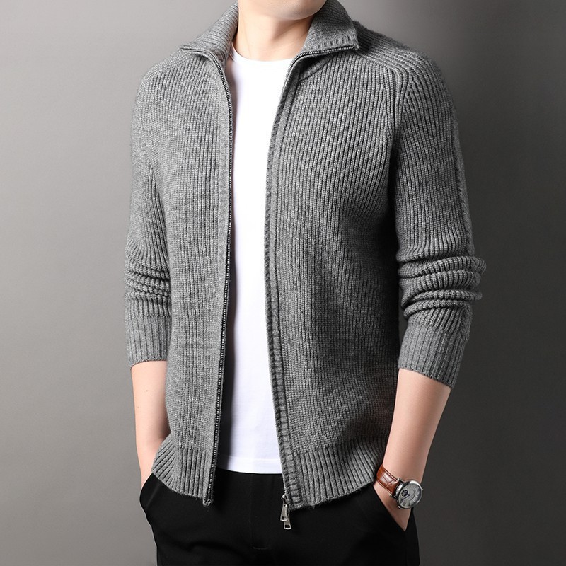 2024 가을과 겨울 새로운 남성 니트 카디건 젊고 중년 패션 캐주얼 지퍼 옷깃 재킷 스웨터 코트 남성