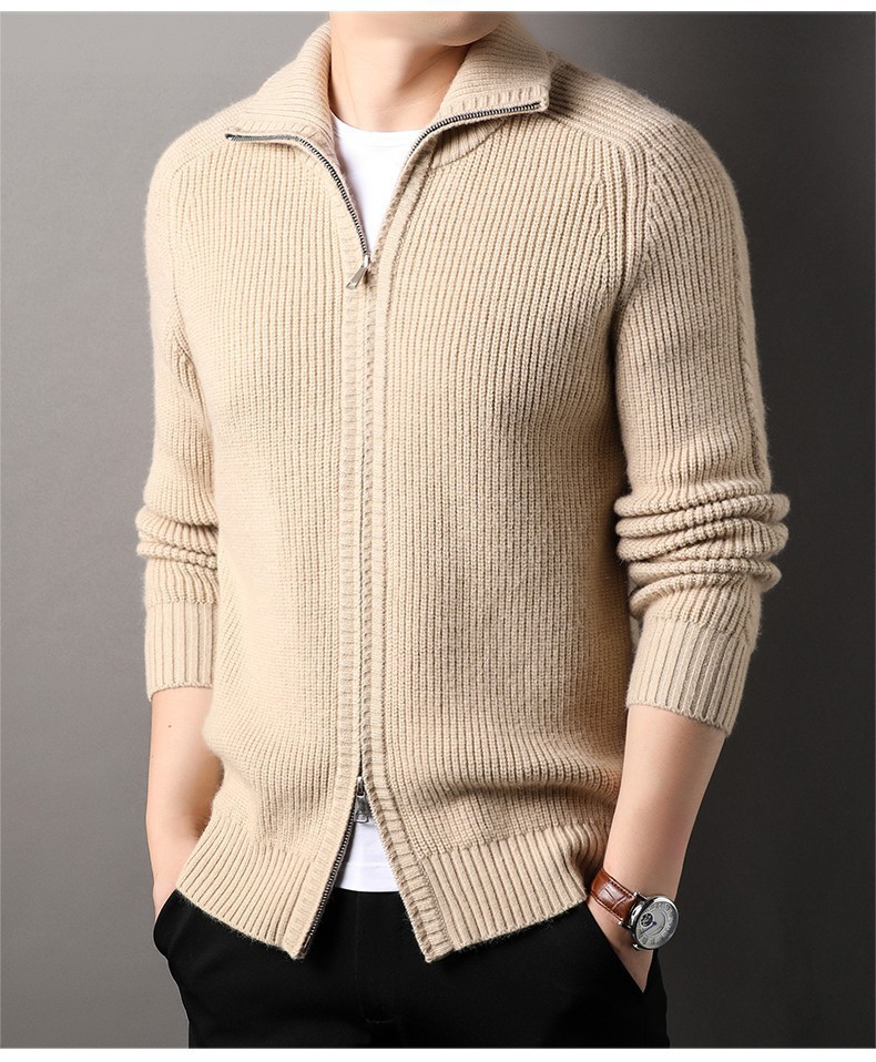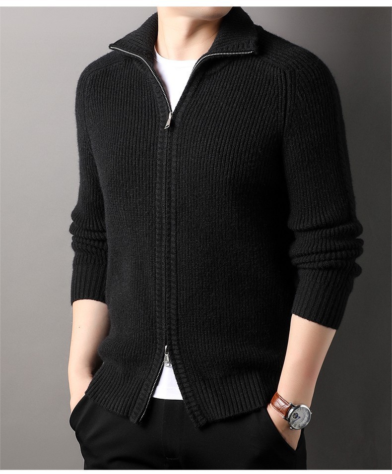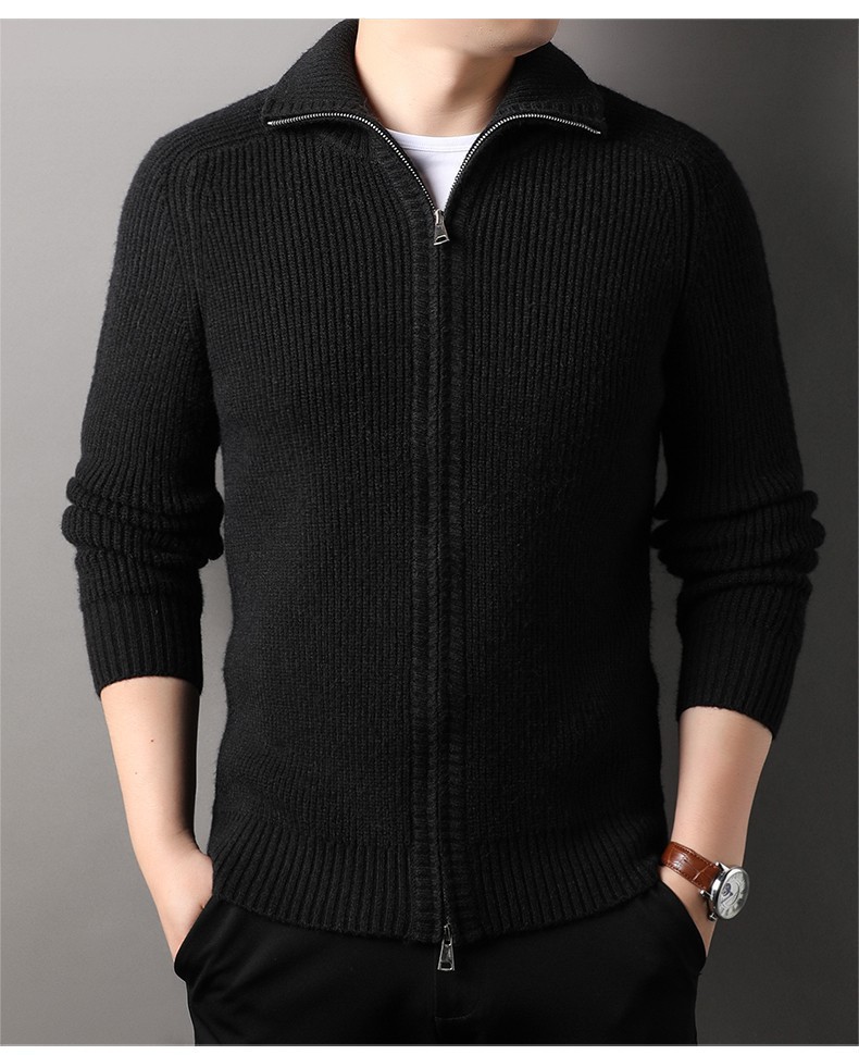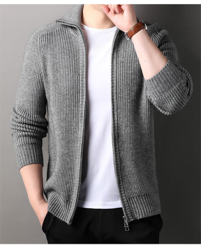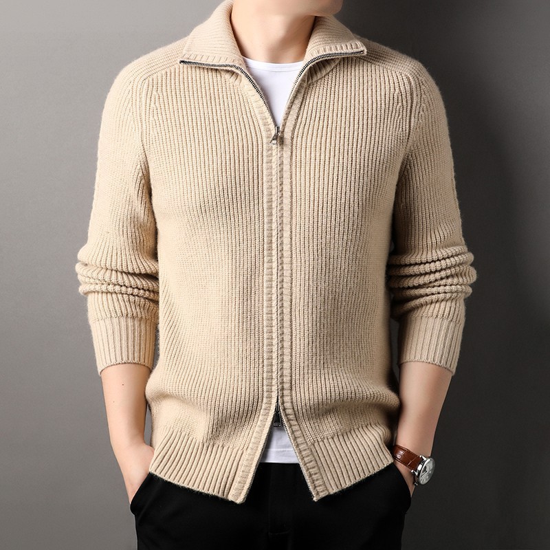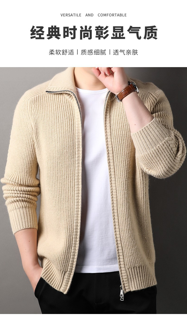 2024 가을과 겨울 새로운 남성 니트 카디건 젊고 중년 패션 캐주얼 지퍼 옷깃 재킷 스웨터 코트 남성