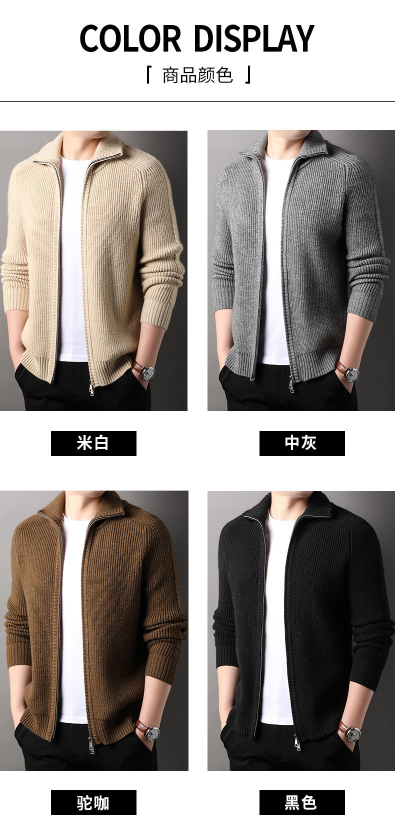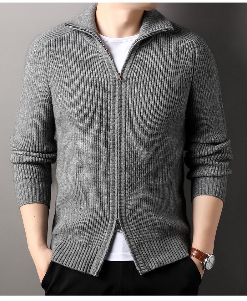 2024 가을과 겨울 새로운 남성 니트 카디건 젊고 중년 패션 캐주얼 지퍼 옷깃 재킷 스웨터 코트 남성스토어 가기