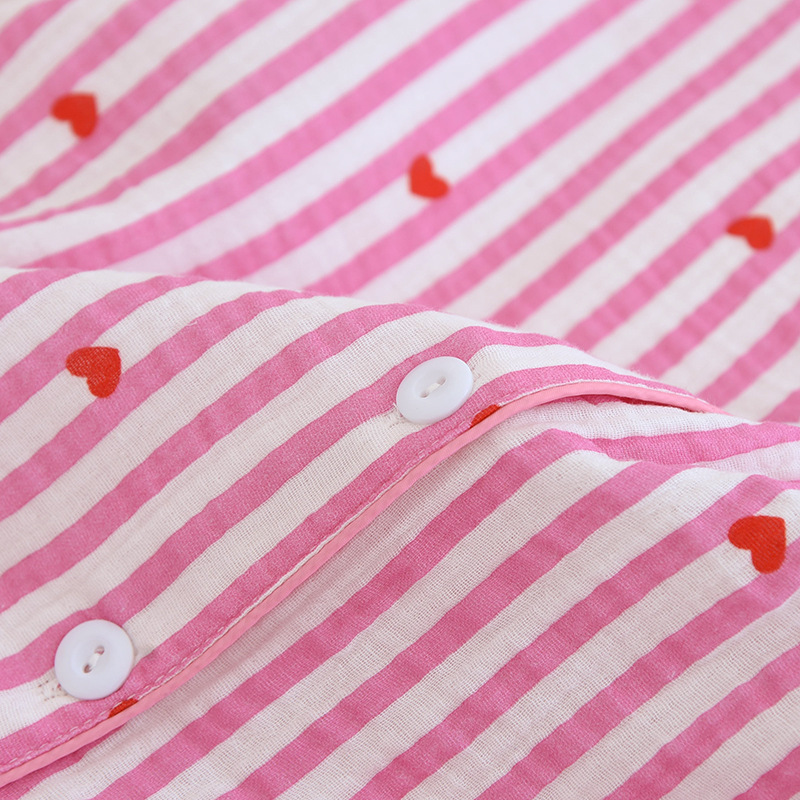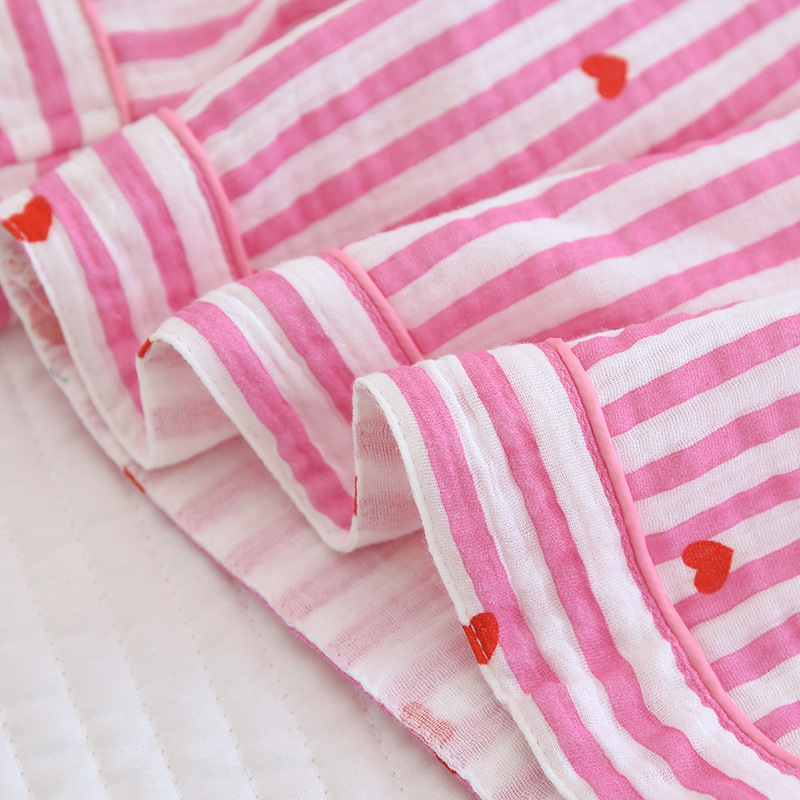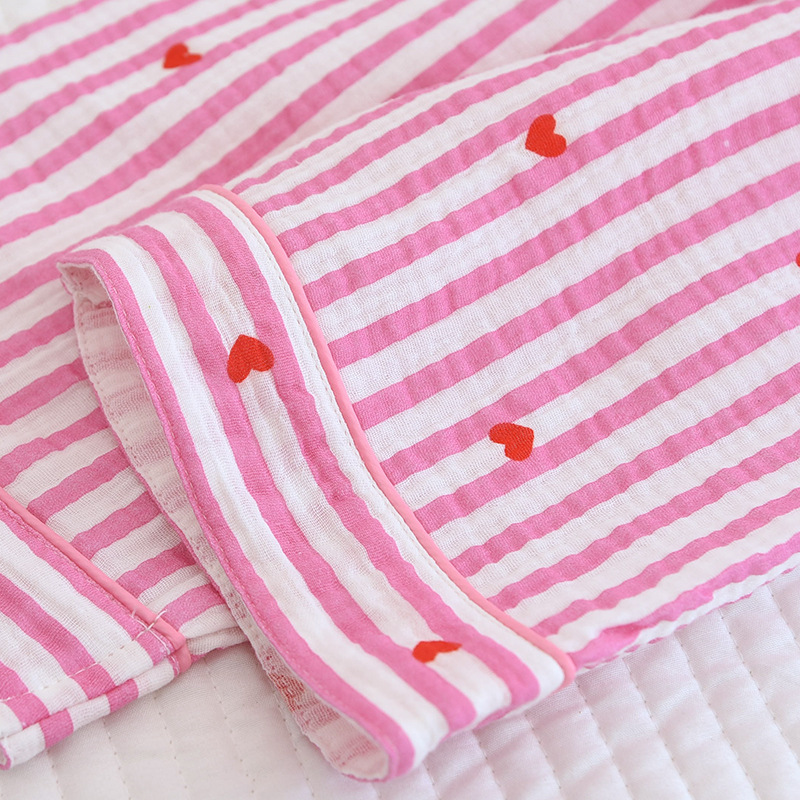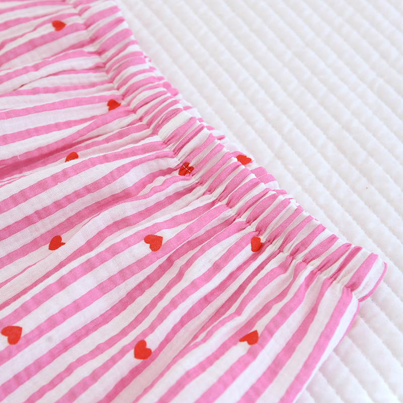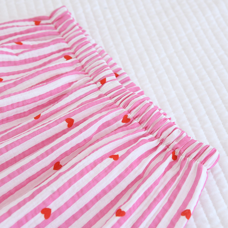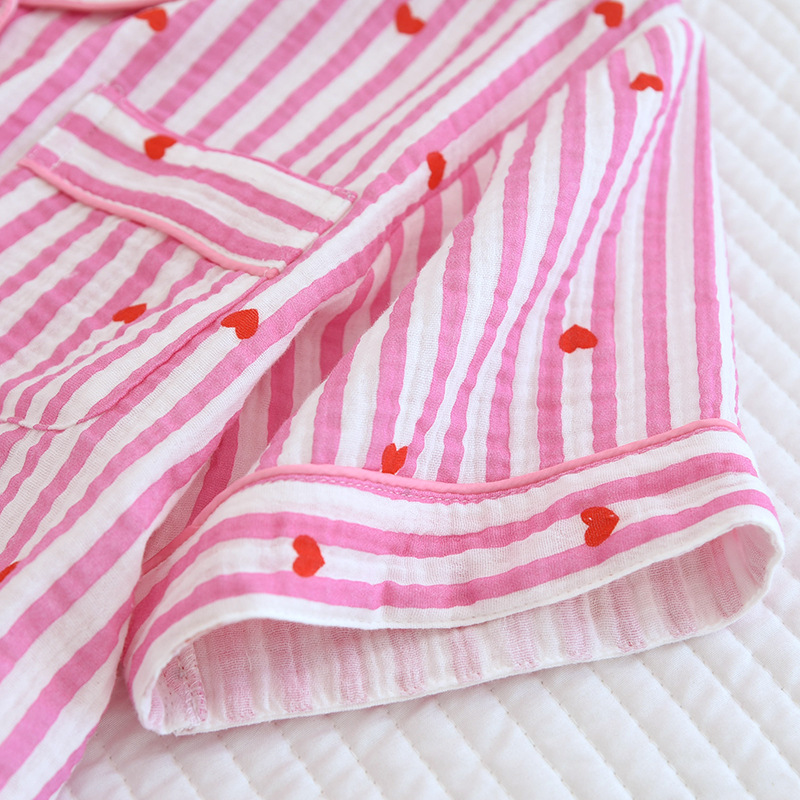 잠옷 여성의 새로운 여름 거즈 여성면 반팔 반바지 여름 홈 옷 투피스 세트 줄무늬 사랑
