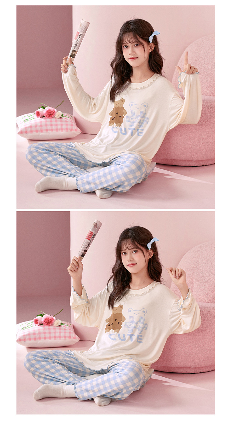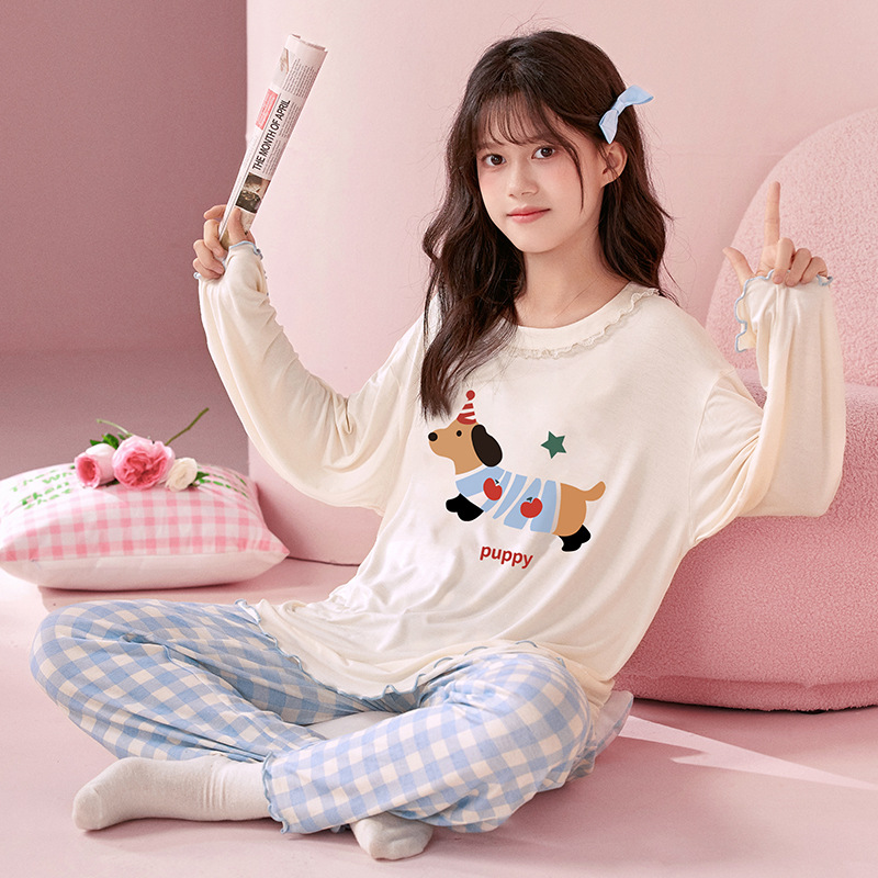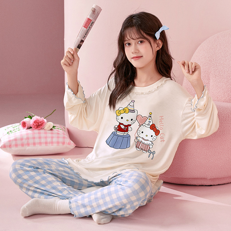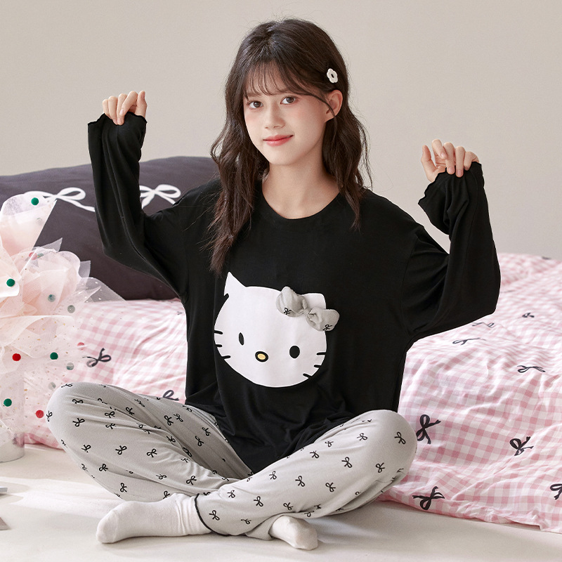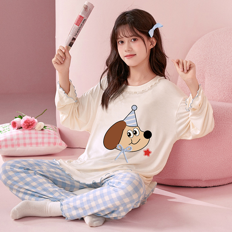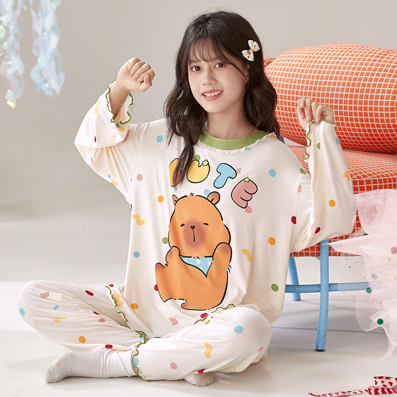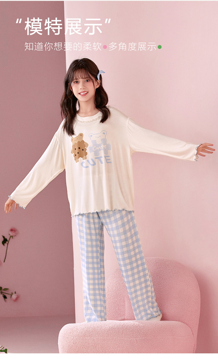 어린이 잠옷 모달 봄과 가을 2025 새로운 대형 소녀 긴팔 홈 의류 가을 어린이 에어컨 룸 세트스토어 가기