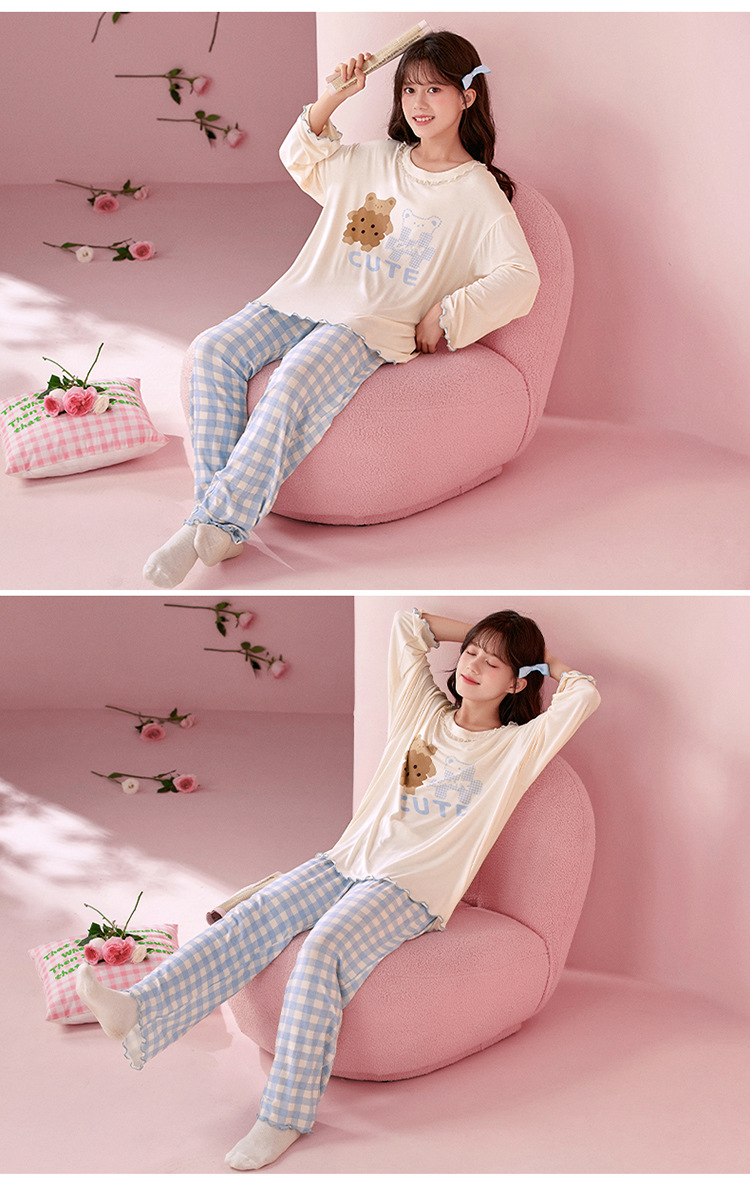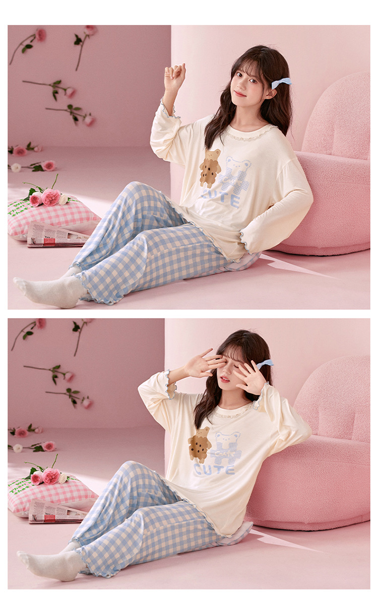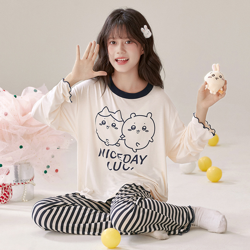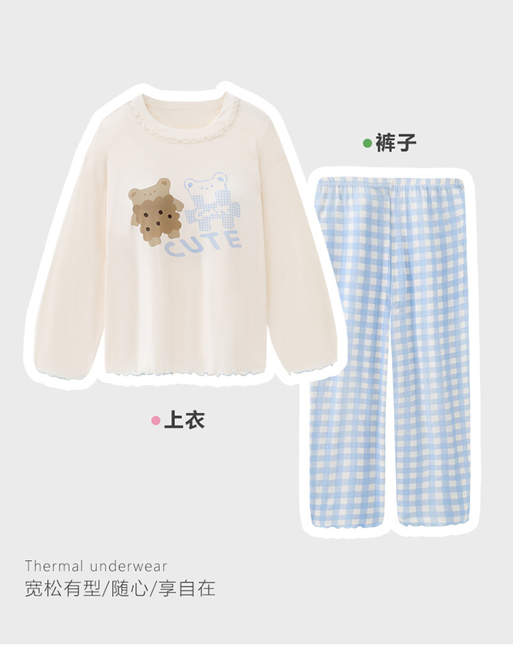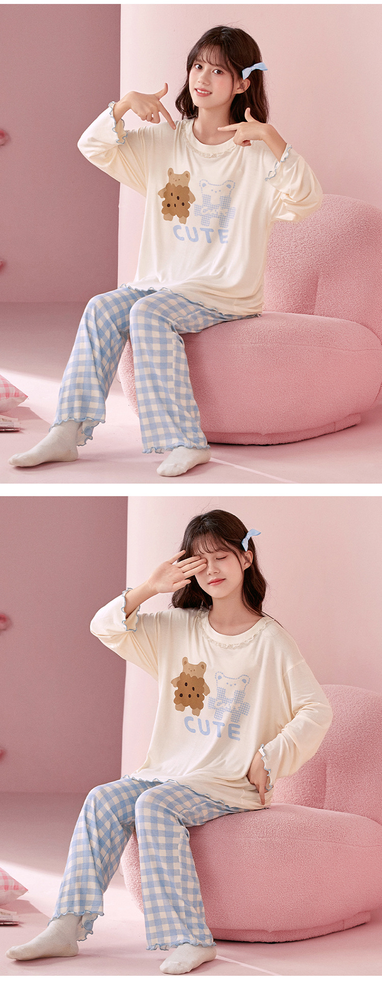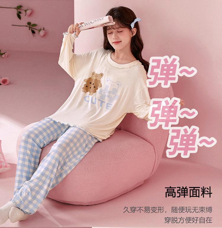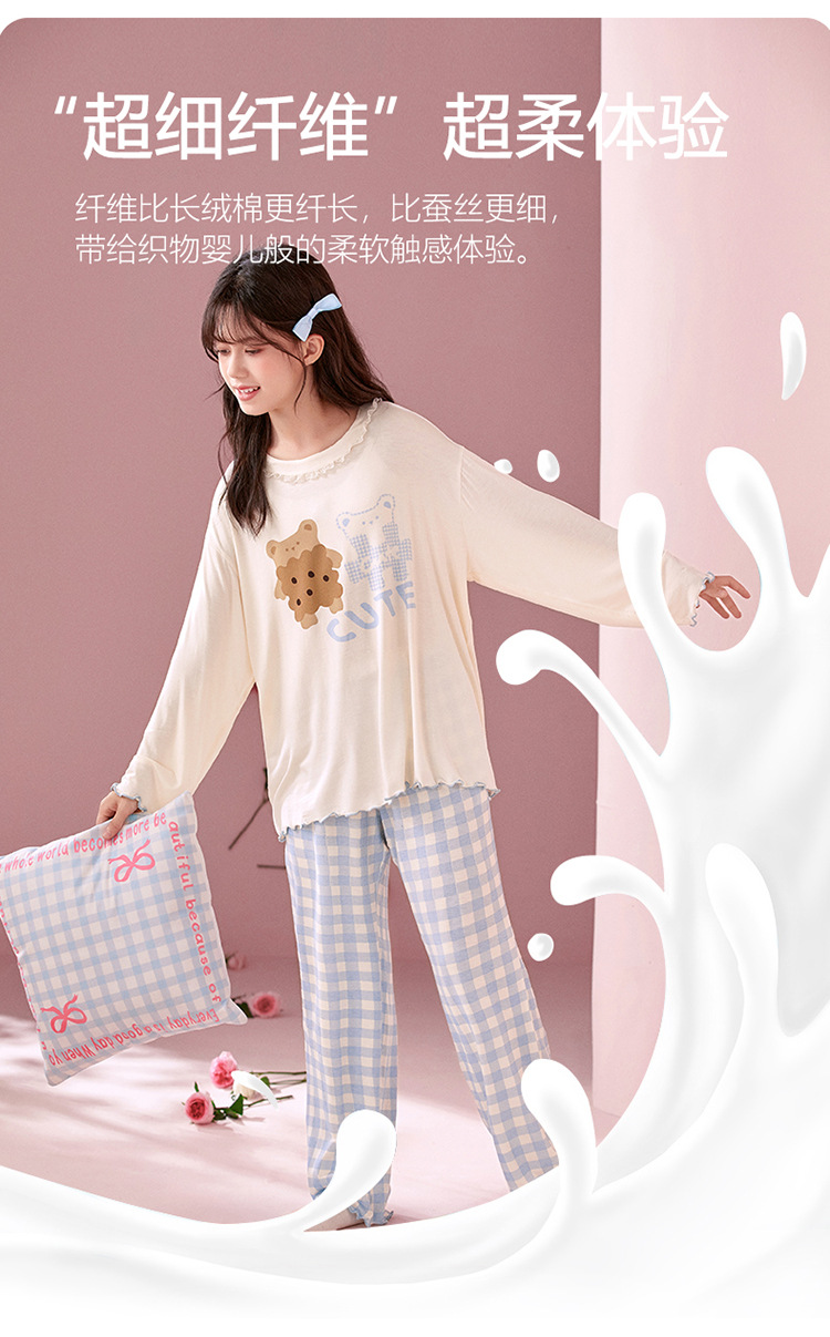 어린이 잠옷 모달 봄과 가을 2025 새로운 대형 소녀 긴팔 홈 의류 가을 어린이 에어컨 룸 세트스토어 가기