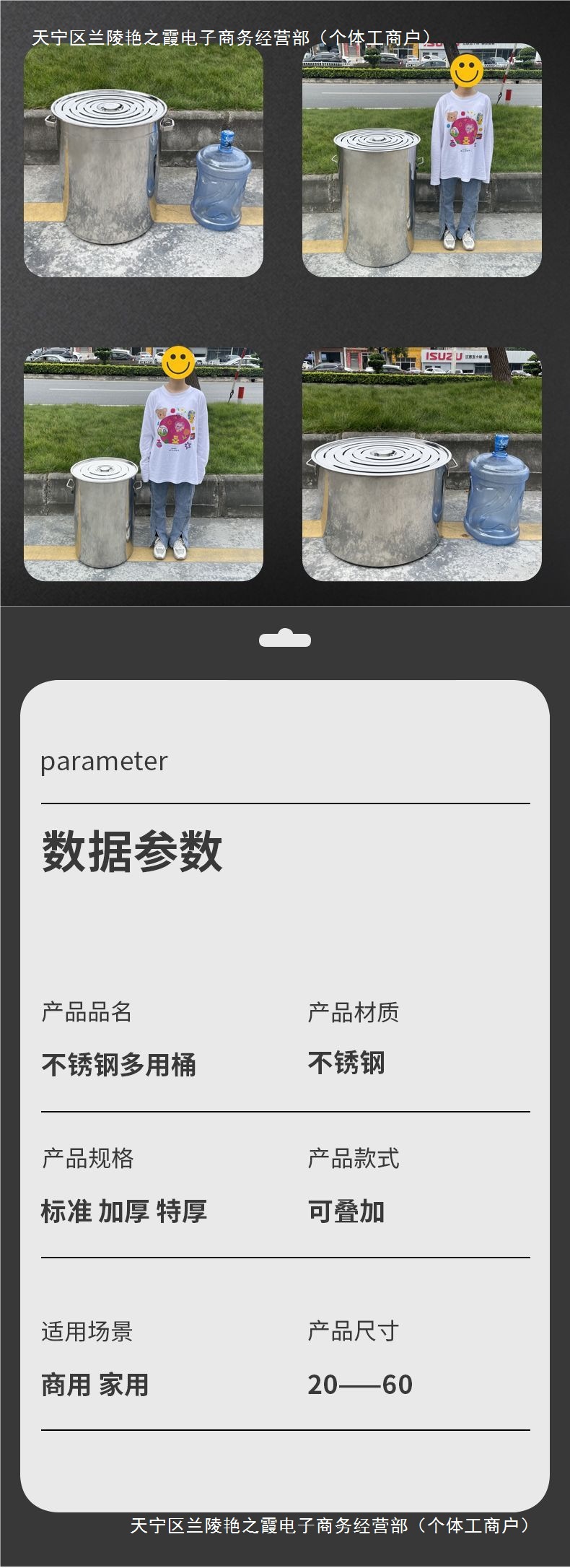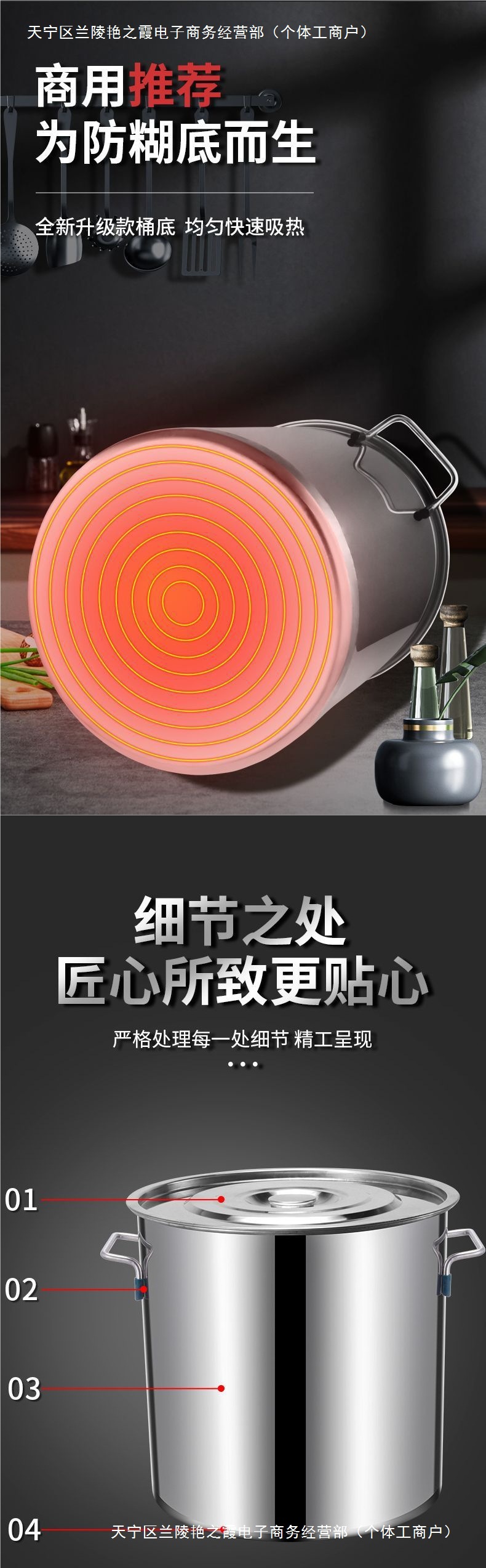 두꺼운 수프 버킷을 가진 상업적인 스테인리스 양동이 둥근 양동이 여분의 두꺼운 가정용 오일 버킷 대용량 주방 냄비 스톨 버킷스토어 가기