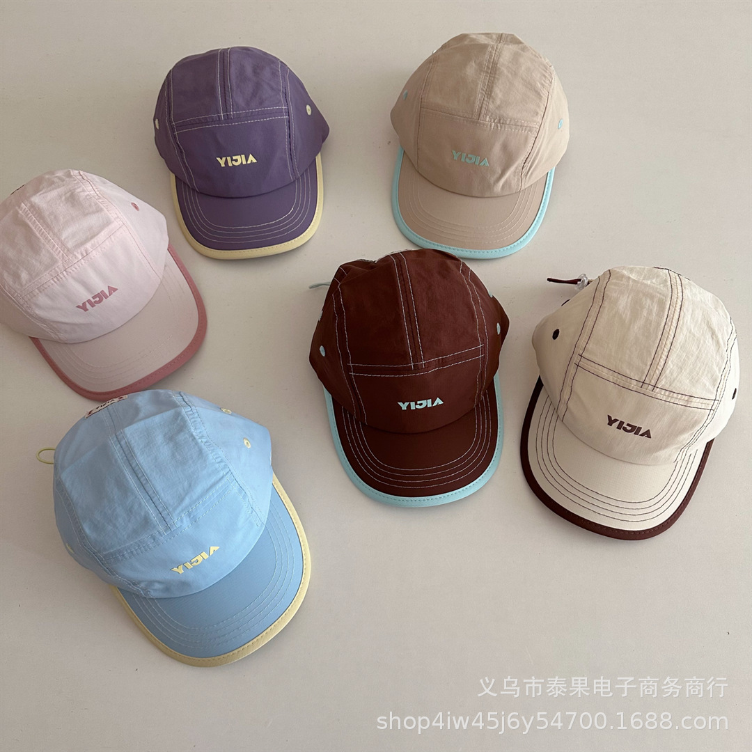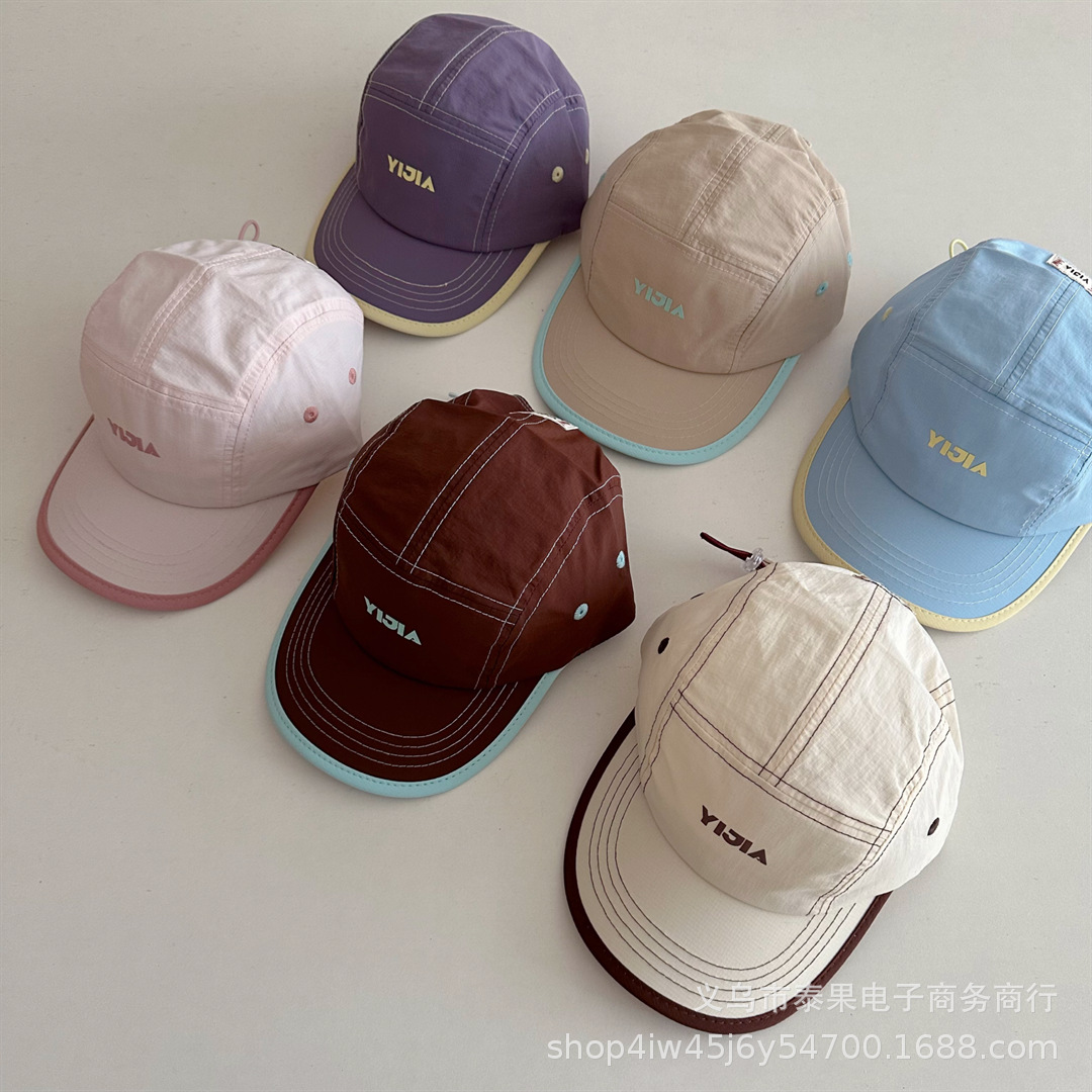 봄과 여름 어린이의 얇은 통기성 빠른 건조 5 피스 스티칭 야구 모자 소년과 소녀 서양식 자동차 스티칭 올 매치 캡스토어 가기