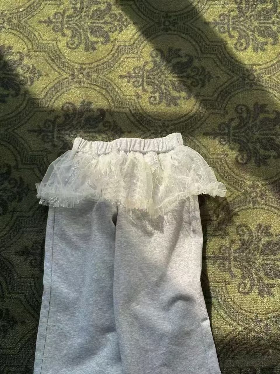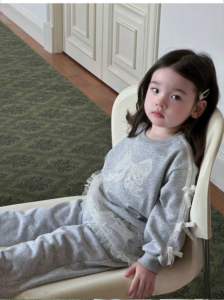 CT251330 아동복 세트 2025 여아 한국판 만화 리본 스웨트셔츠 레이스 스커트 스웨트셔츠 세트