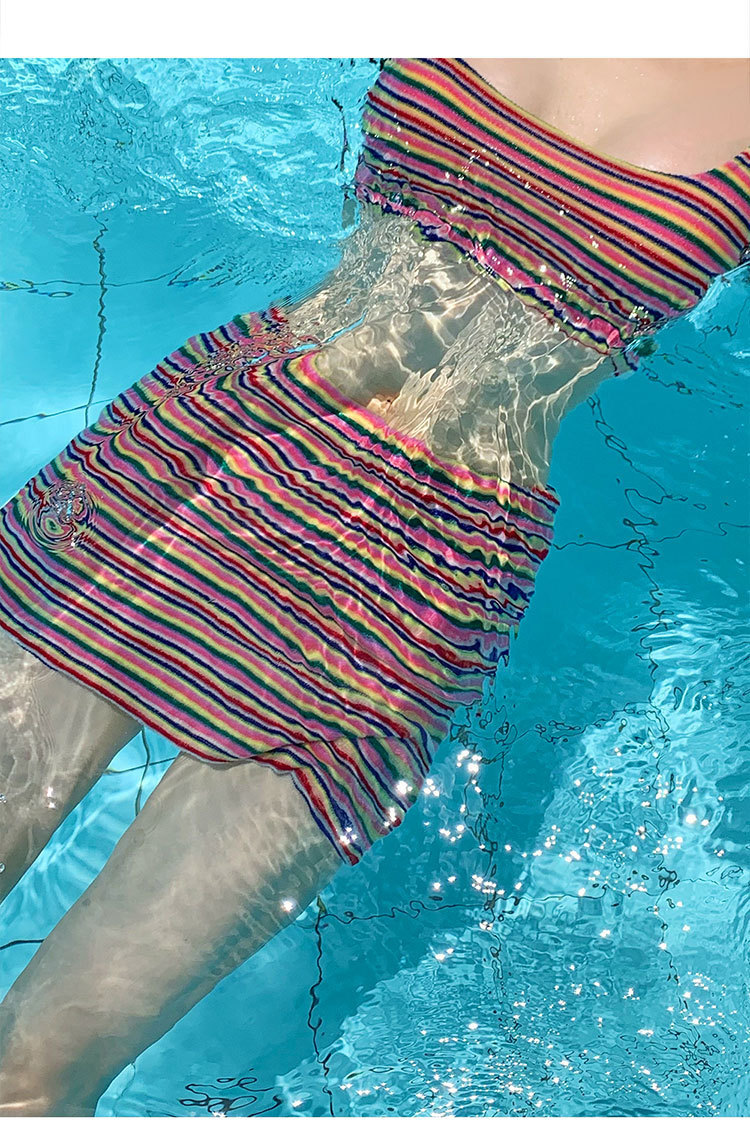 2025 새로운 스타일 줄무늬 뜨거운 소녀 여름 치마 스플릿 수영복 여성 한국 스타일 신선한 줄무늬 국경 온천 수영복스토어 가기