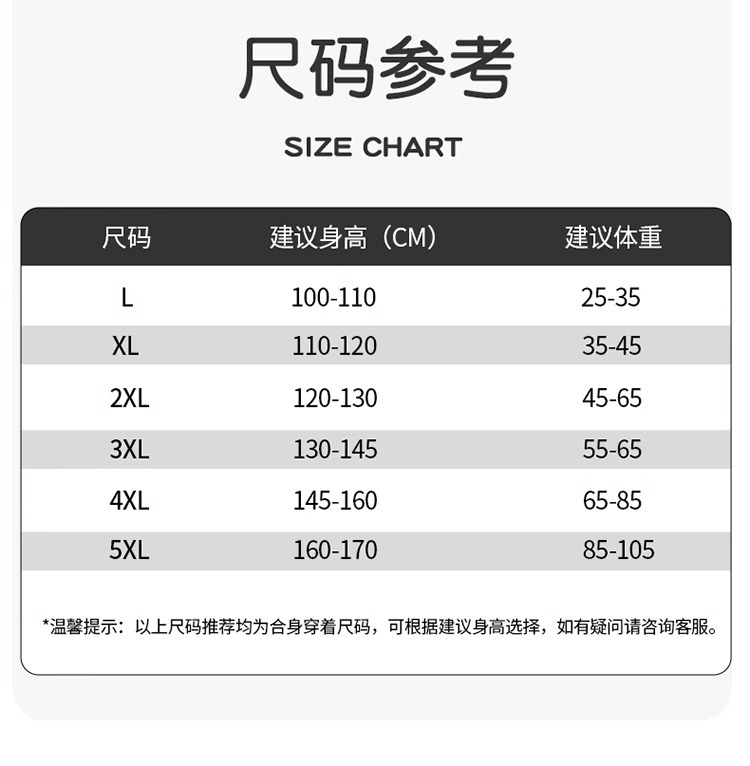 • 3XL (키 130-145cm, 몸무게 27.5-32.5kg 추천)