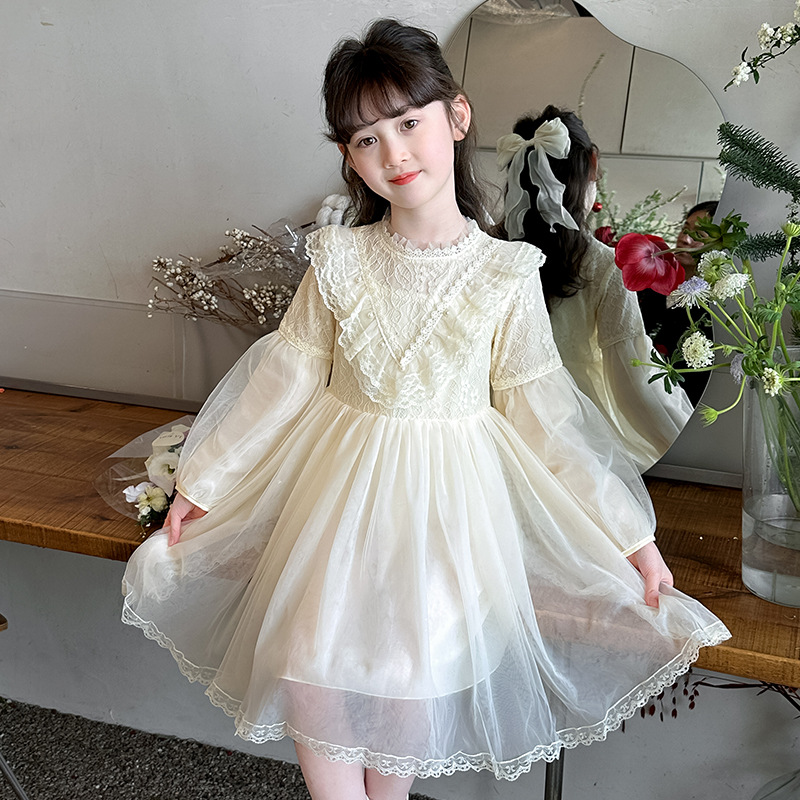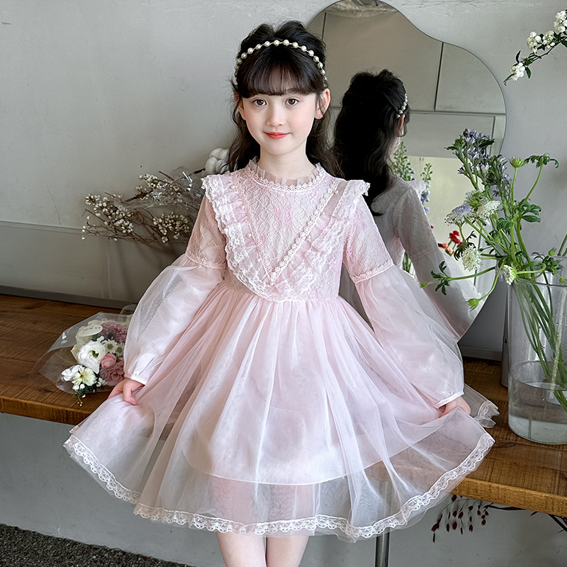 소녀 원피스 2025 새 봄 원피스 서양식 소녀 긴팔 공주 원피스 거즈 원피스 봄 가을 어린이 치마스토어 가기