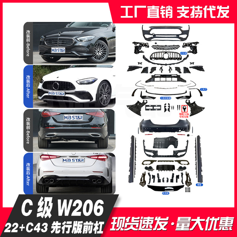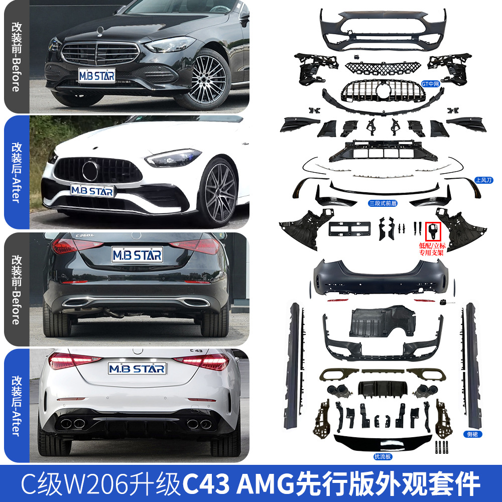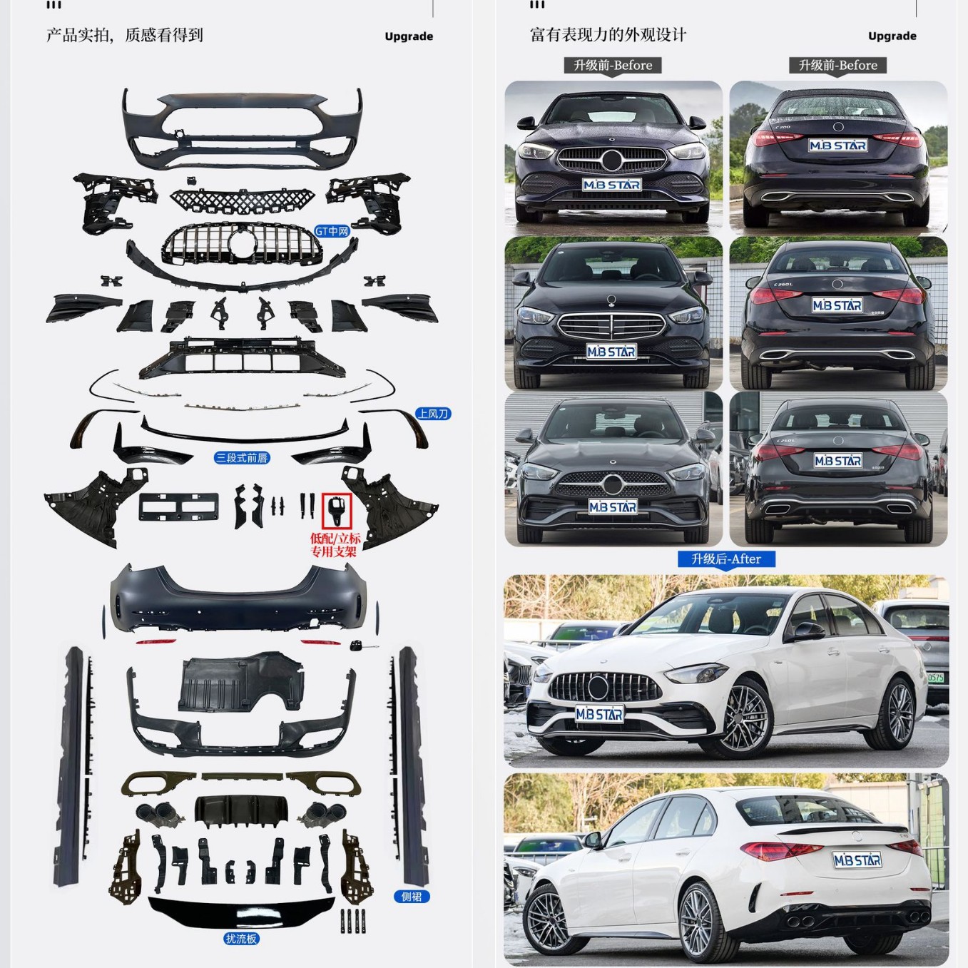 벤츠 c 클래스 W206 22 C43 고급 버전 외관 키트 전면 범퍼 전면 및 후면 서라운드스토어 가기