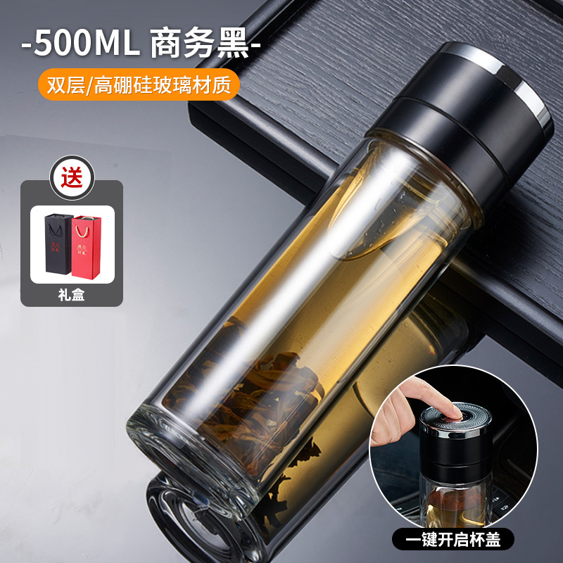 • [비즈니스 블랙] 대형 + 선물박스 + 브러쉬 - 이중유리 물컵