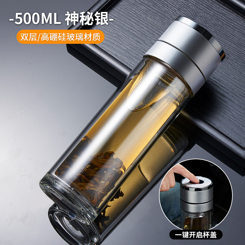 • [미스테리어스 실버] 대형 사이즈 + 선물박스 + 브러쉬 - 이중유리 물컵