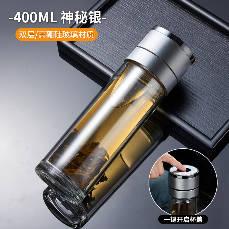 원클릭 개폐 자동차 유리 컵, 낙하 방지 및 방폭형, 한 손으로 누르면 열림, 이중층 빠른 개방형 남성용 차 컵