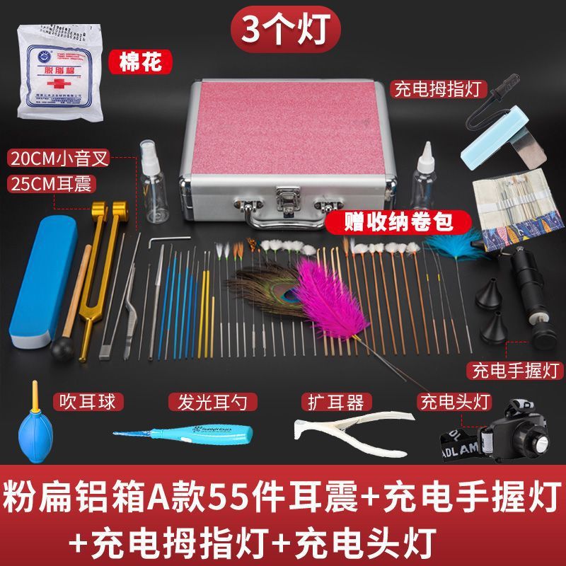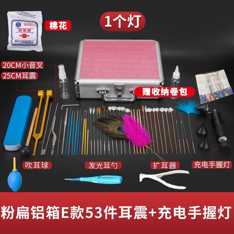 • 핑크 플랫 알루미늄 박스 E 스타일 53개 세트(이어 쇼크 및 핸드 라이트)