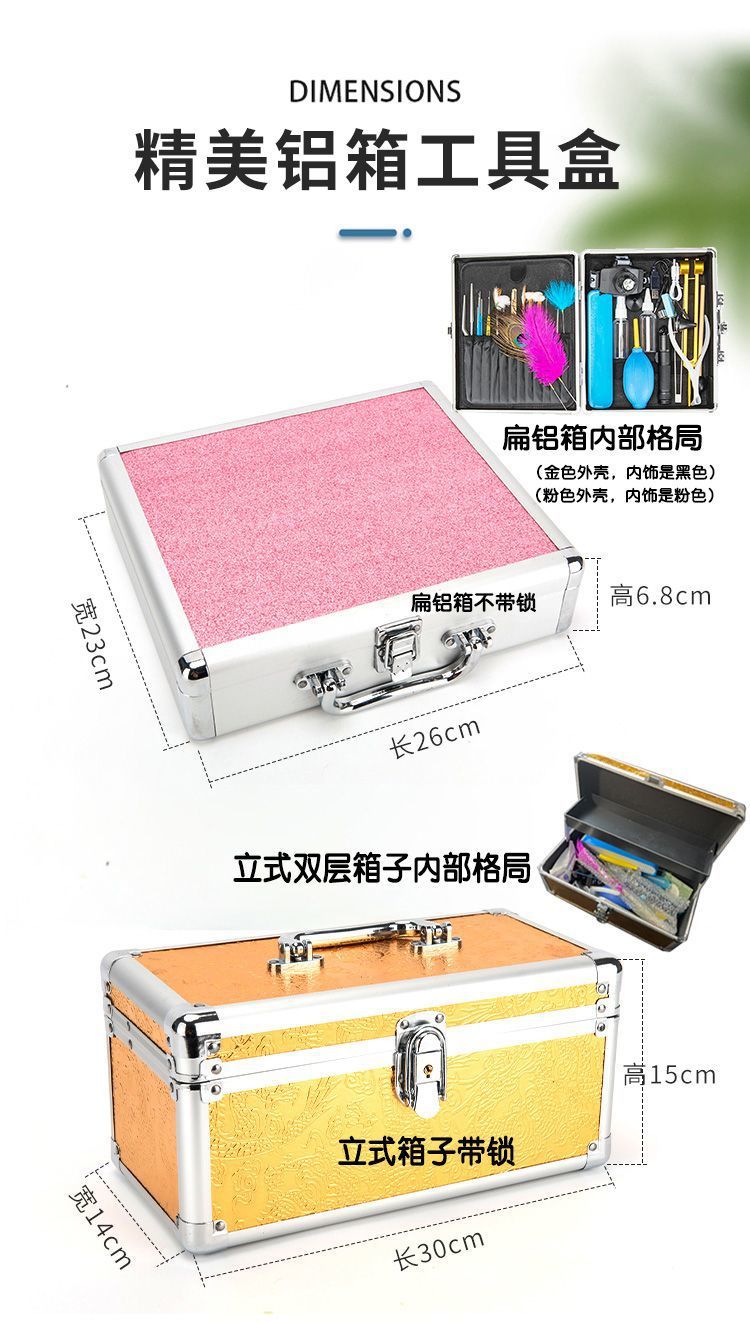 • 핑크 플랫 알루미늄 박스 B형 54개 세트(핸드헬드 램프 및 헤드램프)
