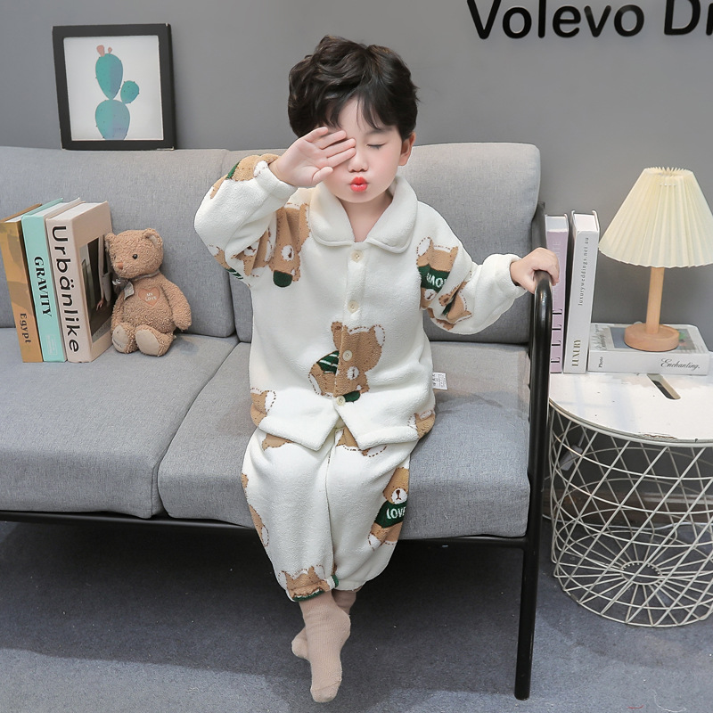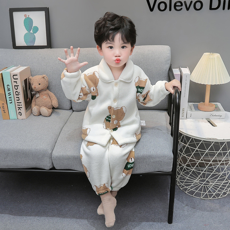 소년 겨울 잠옷 세트 아기 어린이 옷 아기의 가을과 겨울 인쇄 쌀 벨벳 홈 옷