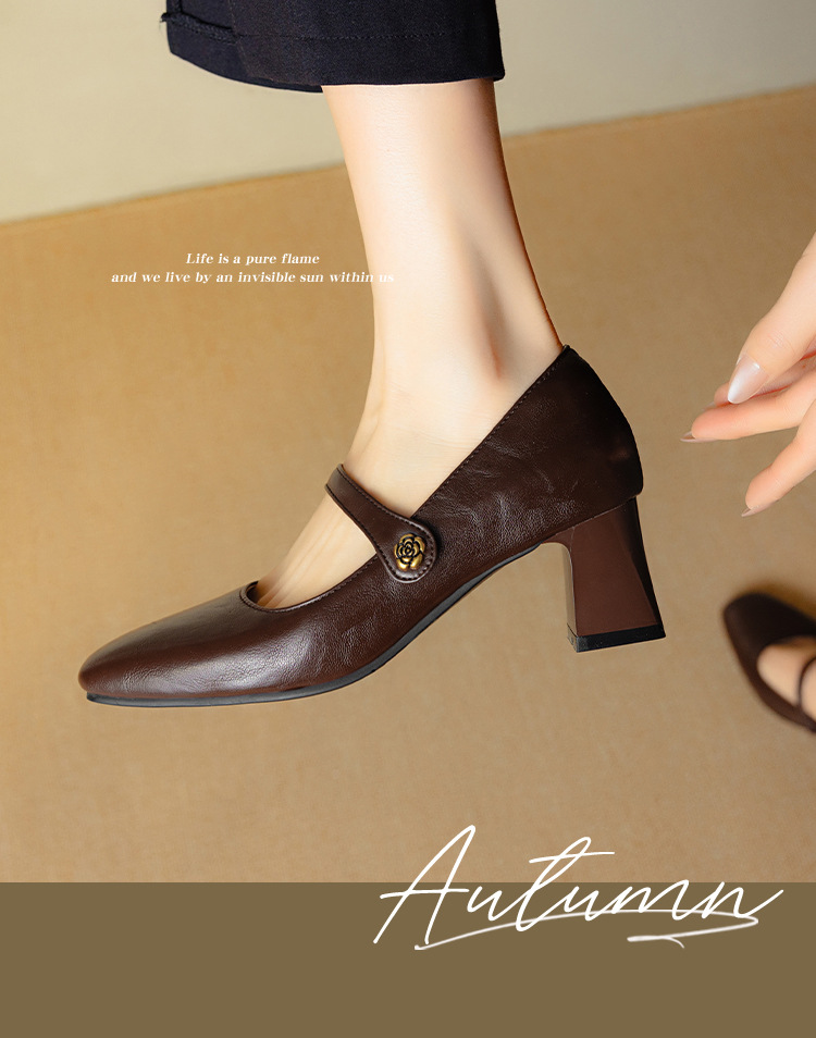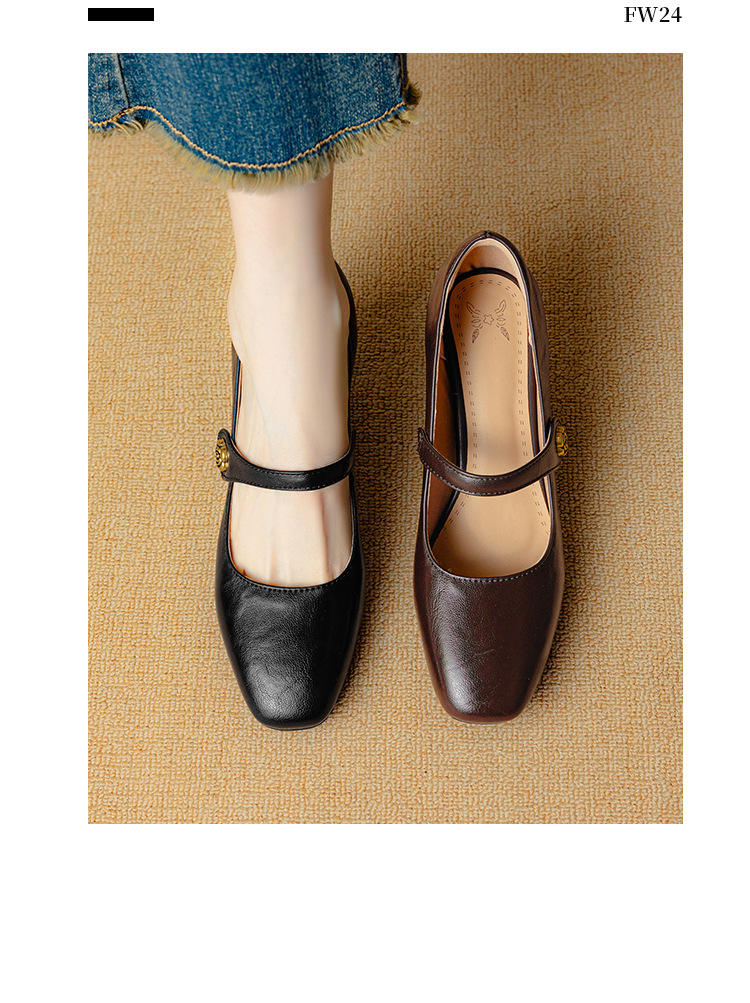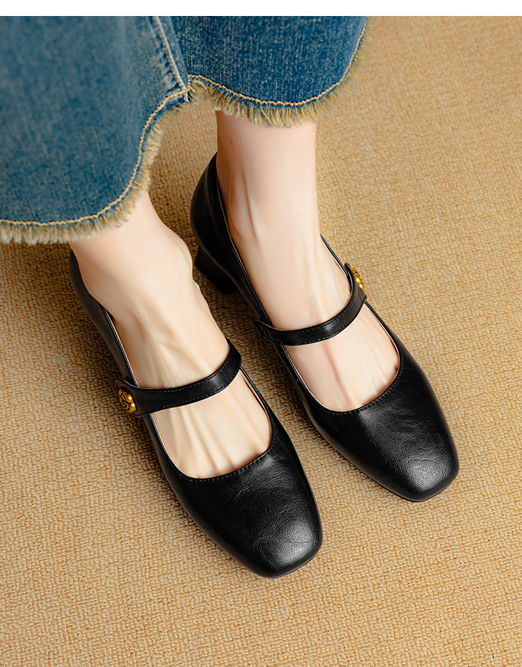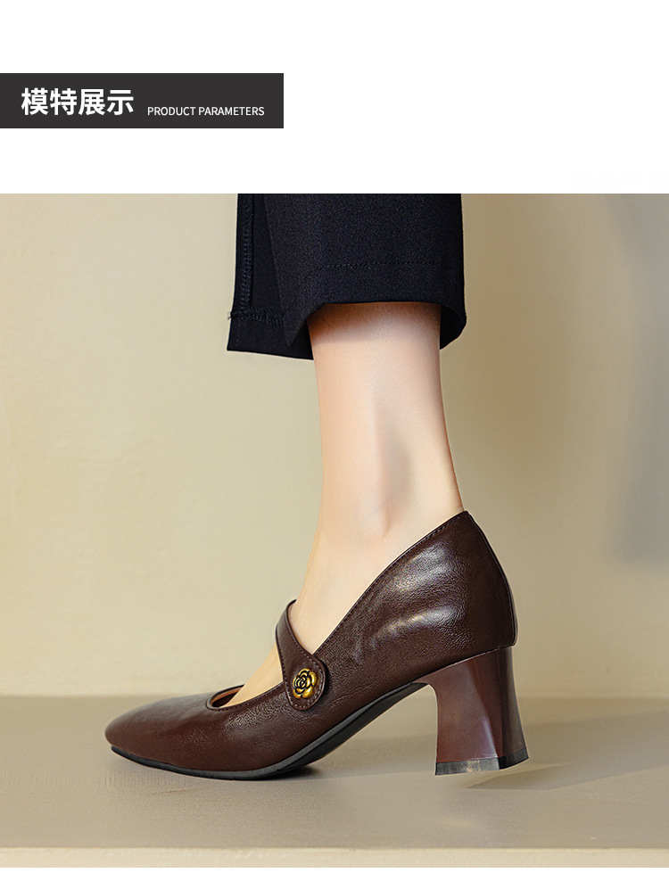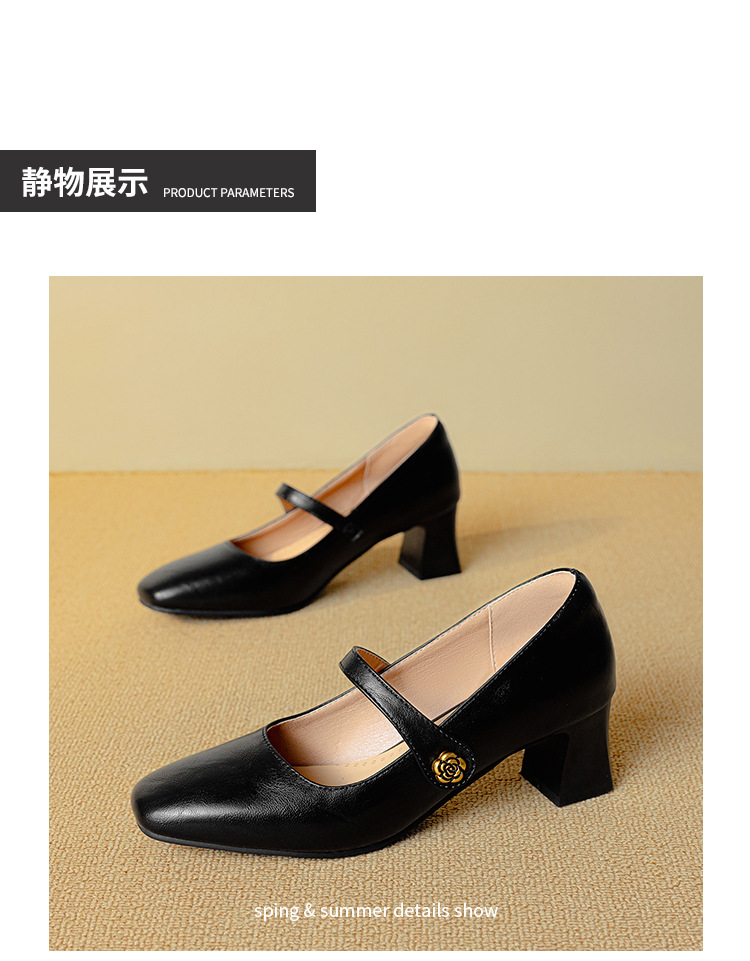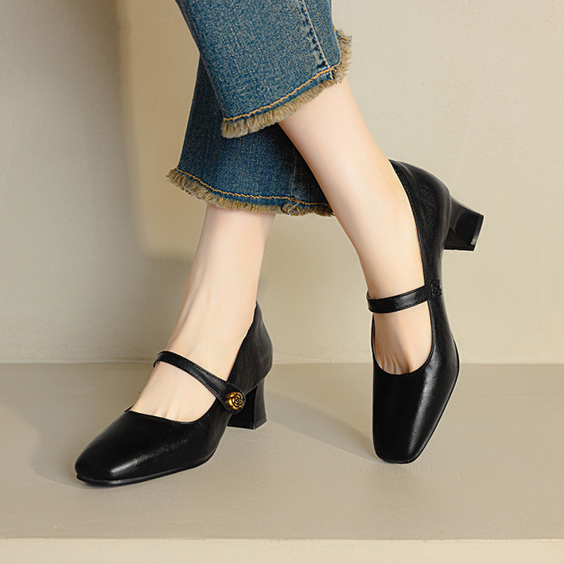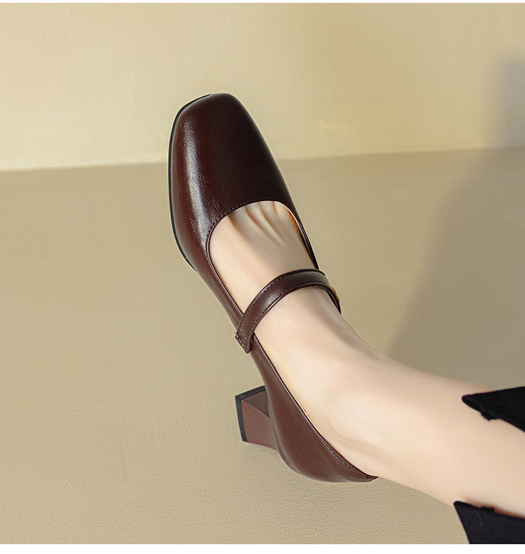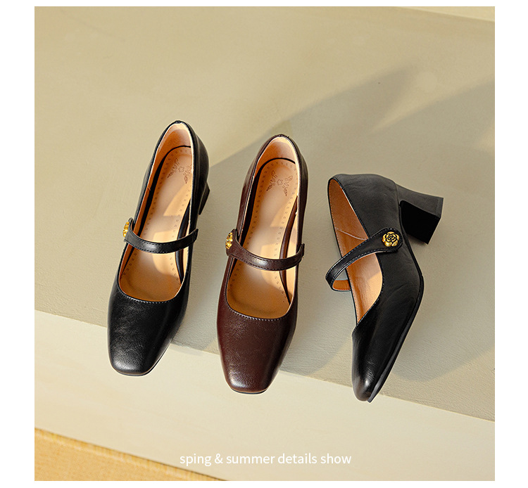 32-43 사이즈 여성 신발 2025 봄 새로운 미드 힐 싱글 신발 여성 스퀘어 헤드 두꺼운 힐 Mary Jane 신발 대외 무역 신발스토어 가기
