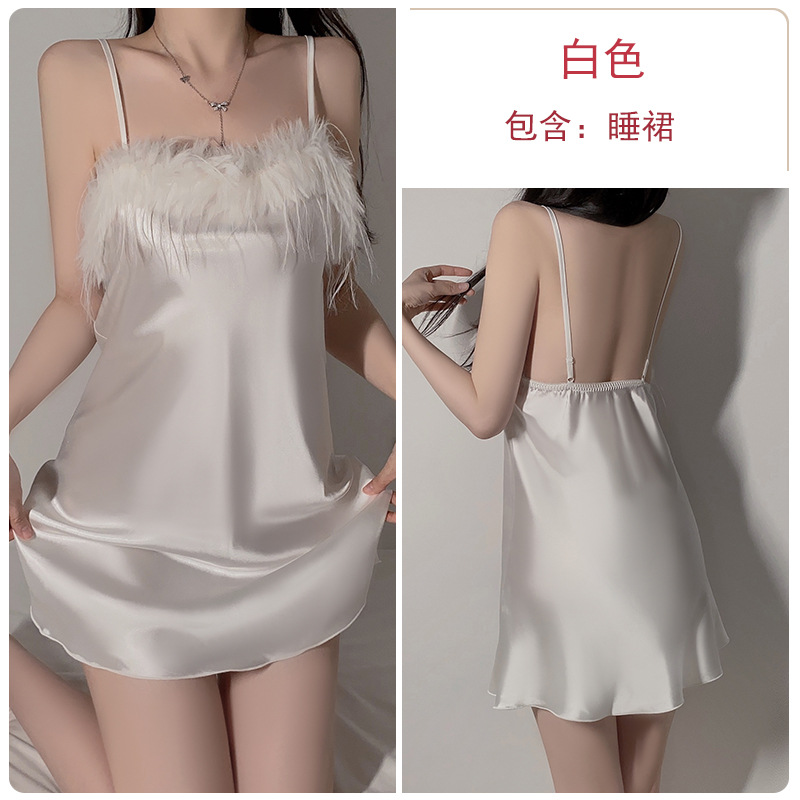 Guiruo 섹시한 로우 컷 봉제 스티칭 실키 새틴 간단한 슬링 잠옷 여성용 홈 의류 세트 4453
