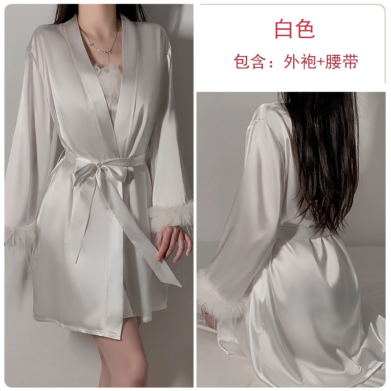 Guiruo 섹시한 로우 컷 봉제 스티칭 실키 새틴 간단한 슬링 잠옷 여성용 홈 의류 세트 4453스토어 가기