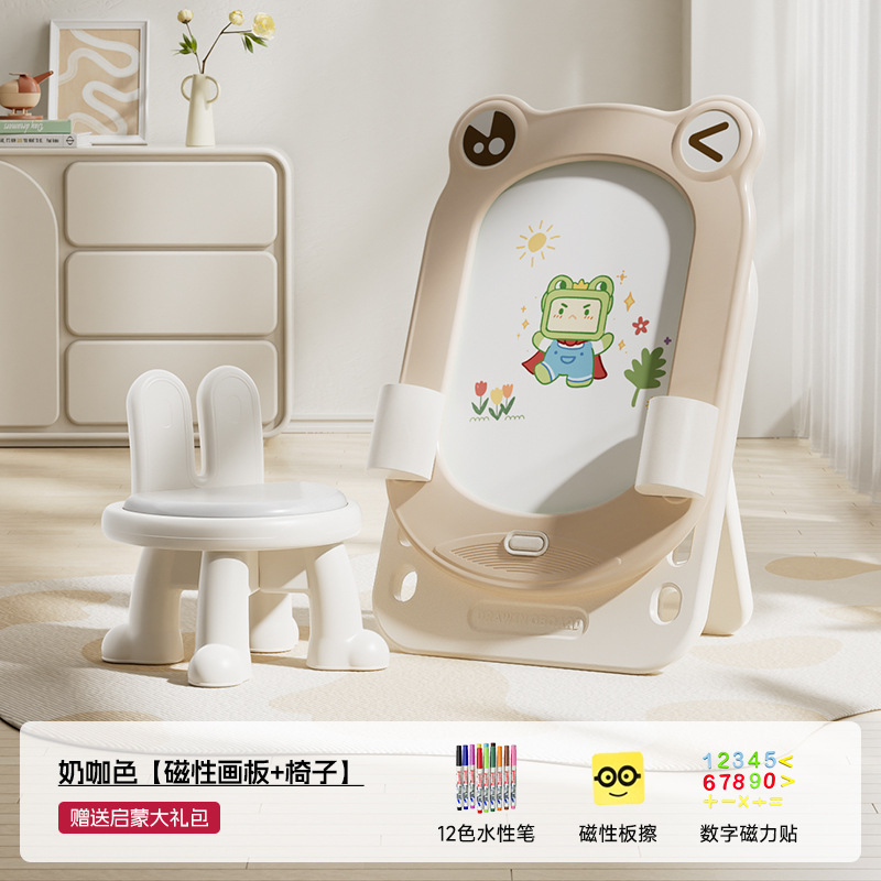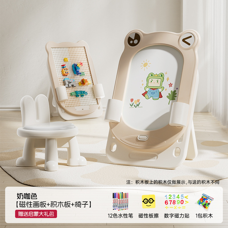 • 밀크 커피 컬러 - 개구리 화판 + 의자 + 계몽 선물 팩 + 빌딩 블록 보드