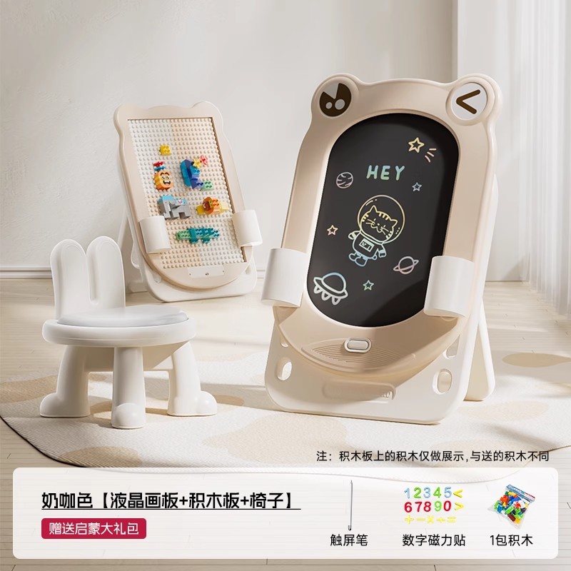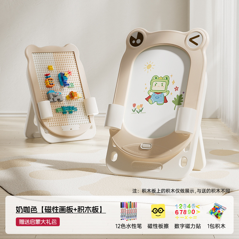 • 밀크 커피 컬러 - 개구리 드로잉 보드 + 계몽 선물 패키지 + 빌딩 블록 보드 + 원클릭 클리어