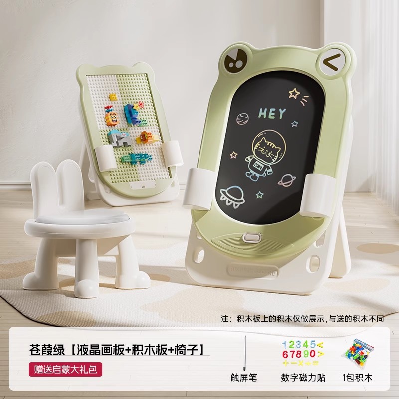 • Cangji Green-Frog 드로잉 보드 + 의자 + 계몽 선물 패키지 + 빌딩 블록 보드 + 원클릭 클리어
