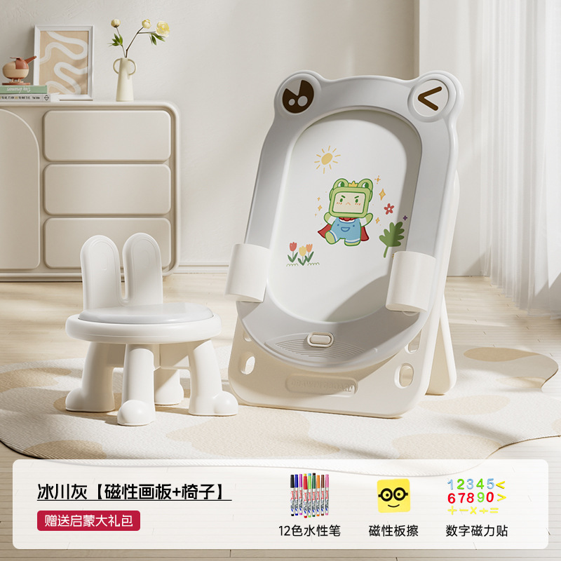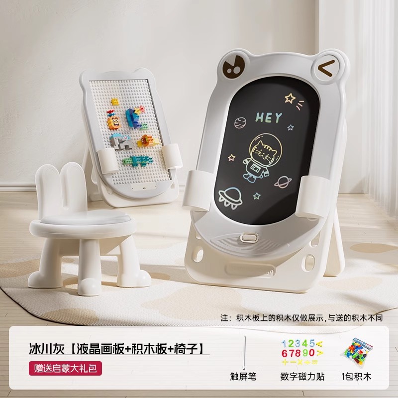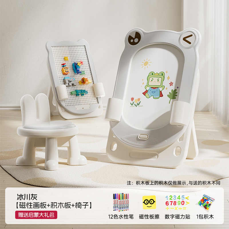 • 글레이셔 그레이 - 개구리 드로잉 보드 + 의자 + 계몽 선물 패키지 + 빌딩 블록 보드 + 원클릭 클리어