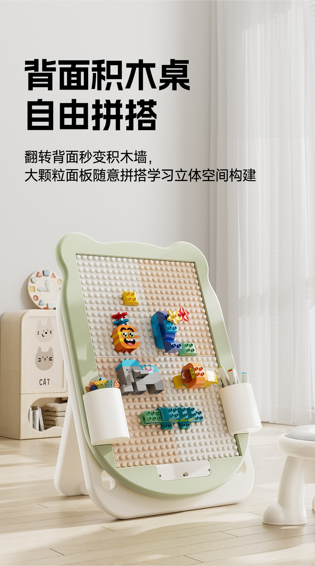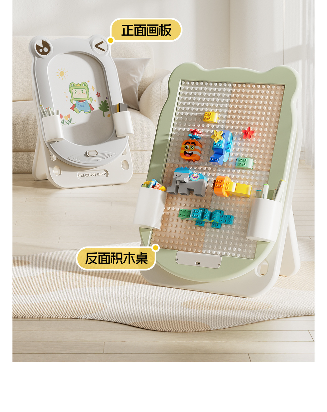 • Cangji Green-Frog 화판 + 의자 + 계몽 선물 팩 + 빌딩 블록 보드