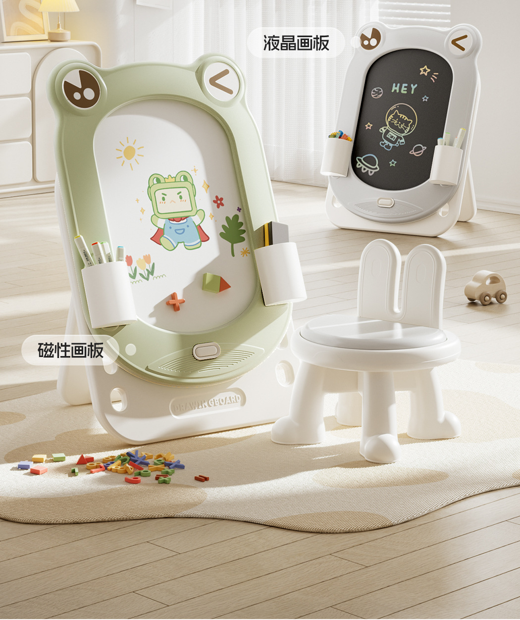 • 글레이셔 그레이-개구리 드로잉 보드 + 의자 + 계몽 선물 팩 + 빌딩 블록 보드